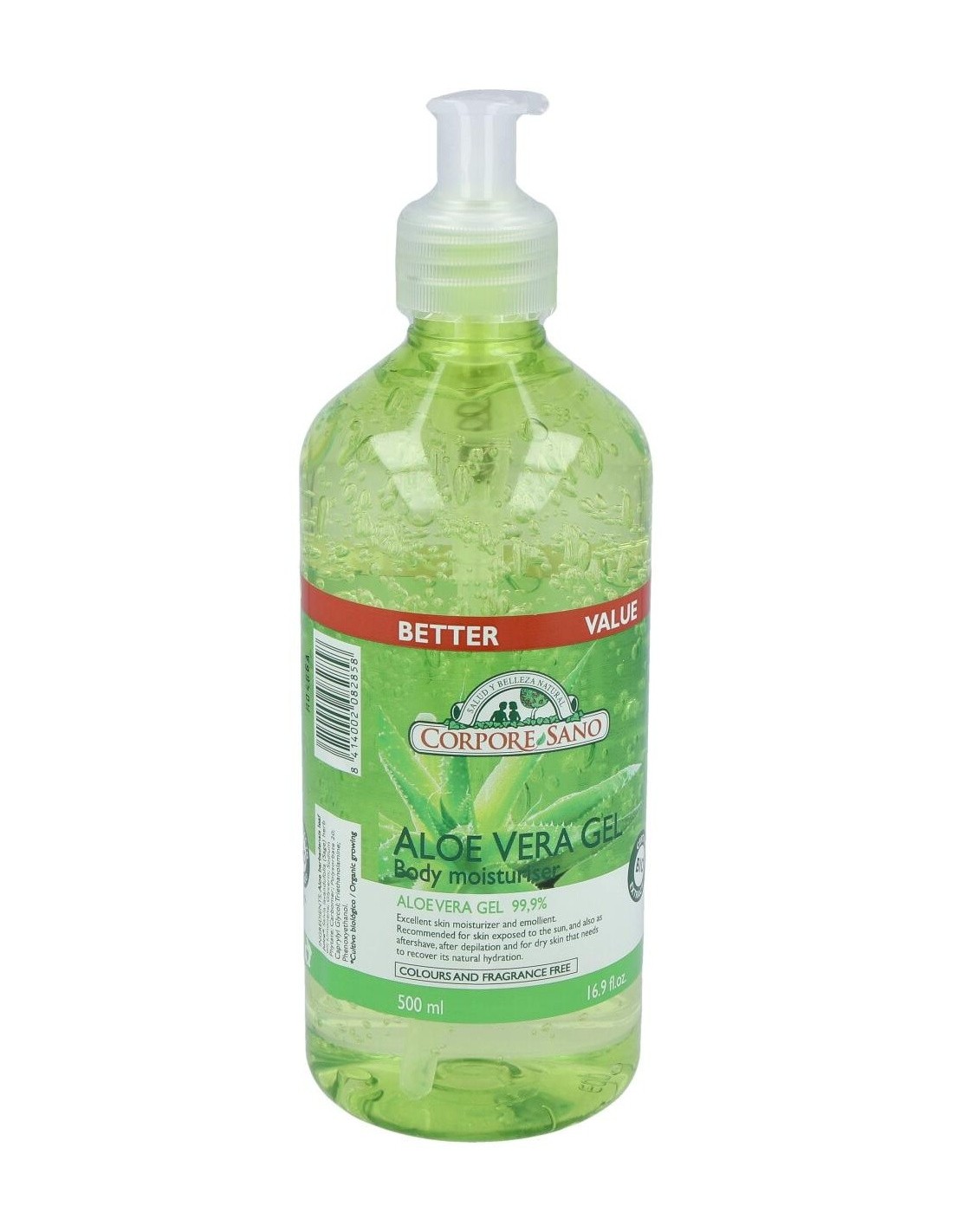 Los principios activos de este gel parten de las cualidades del Aloe vera, que contribuye en la protección de las células ante el daño de los radicales libres. Además, es un eficaz emoliente. Estimula a elasticidad y suavidad. Se recomienda el uso de este producto para después del sol, pues favorece la regeneración cutánea, estabilizando el equilibrio natural del tejido. Para hidratar, proteger y restaurar el tejido cutáneo. Apto para veganos.