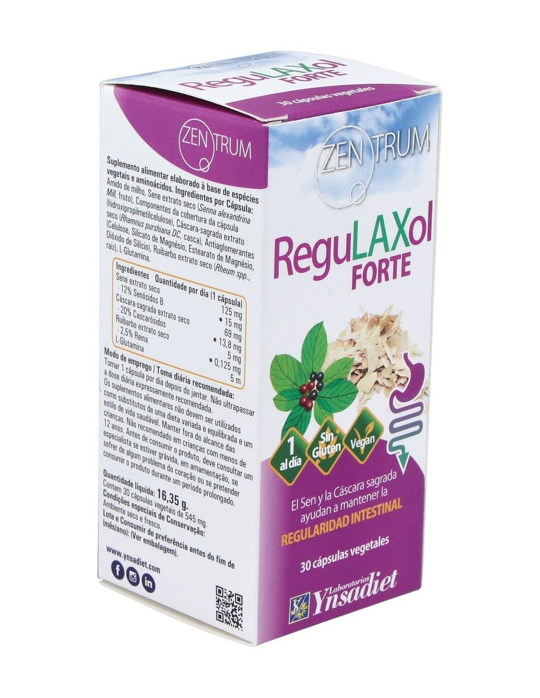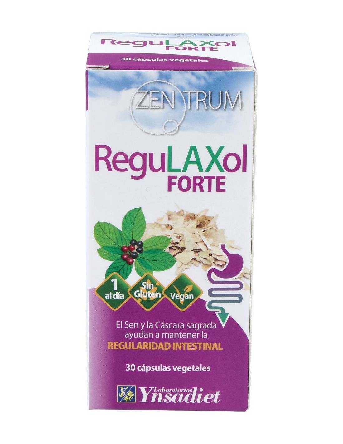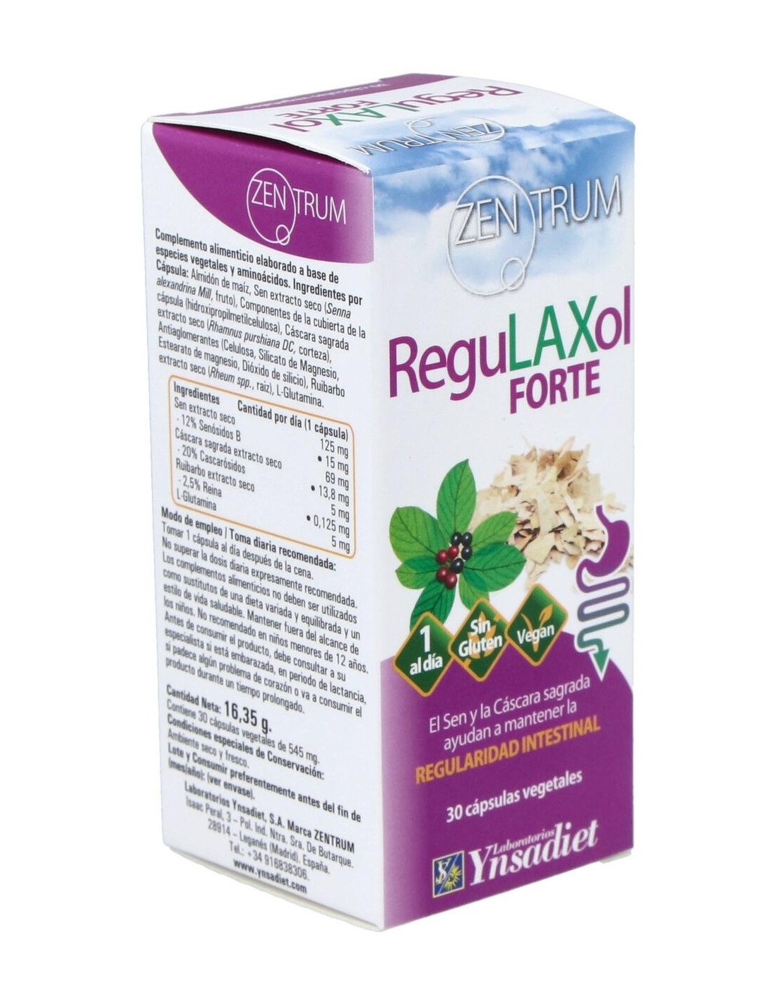Contiene sen y cáscara sagrada, que facilitan los movimientos peristálticos del intestino grueso.