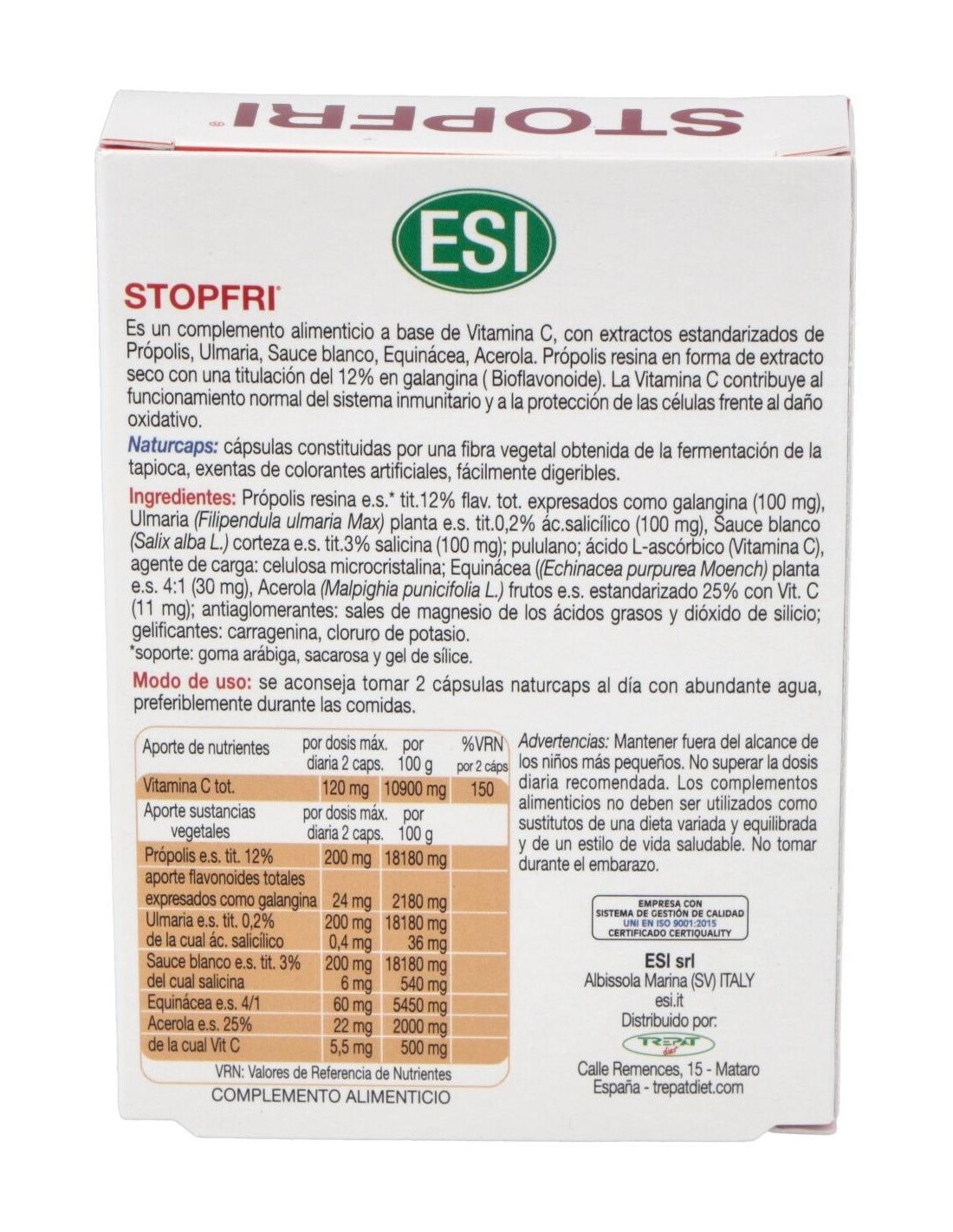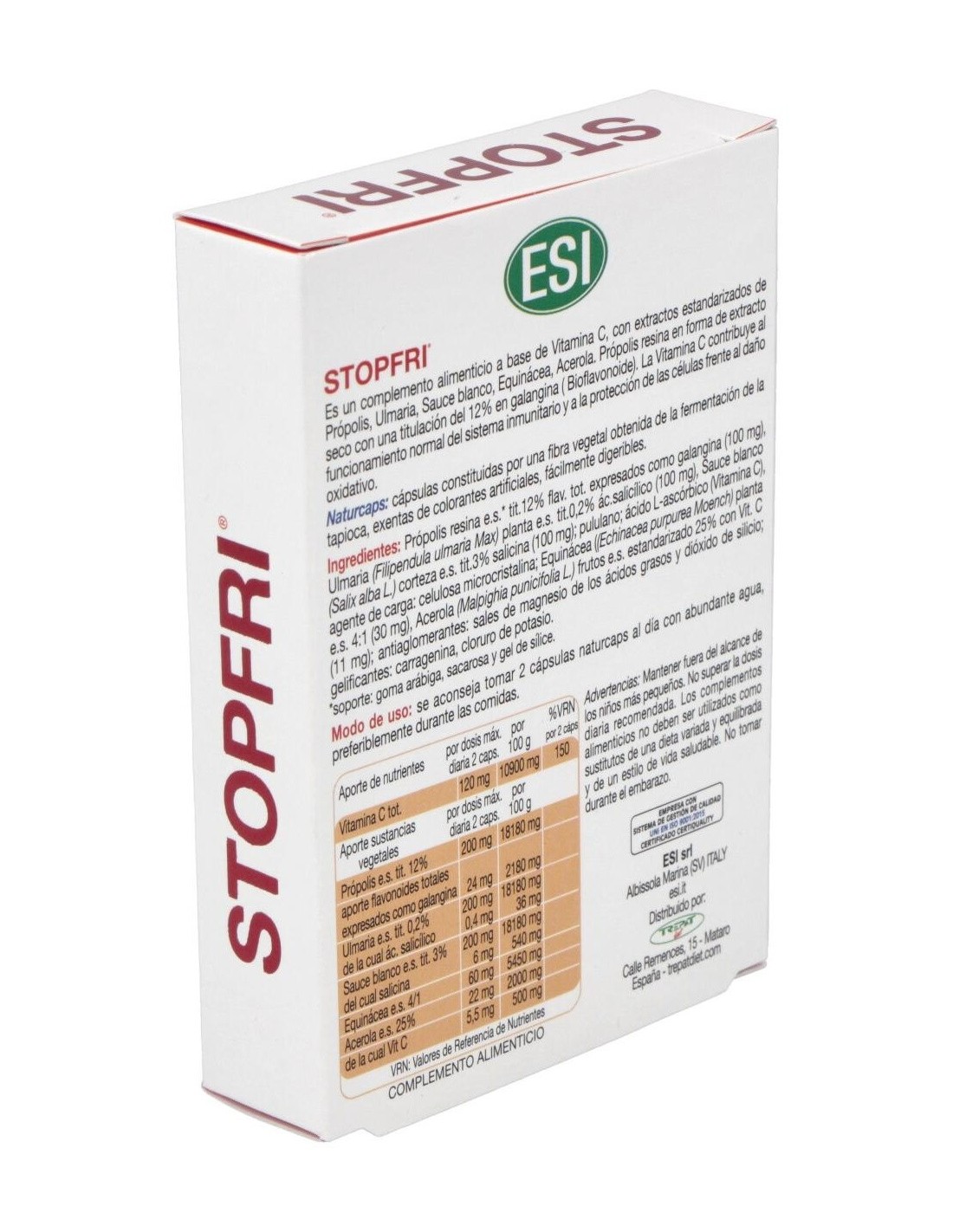 ESI Stopgrip es un complemento alimenticio, formulado a base de extractos de plantas, indicado para estimular y proteger el sistema inmunitario. Contiene vitamina C para darte una mayor protección frente al daño producido por agentes externos, como virus o bacterias.