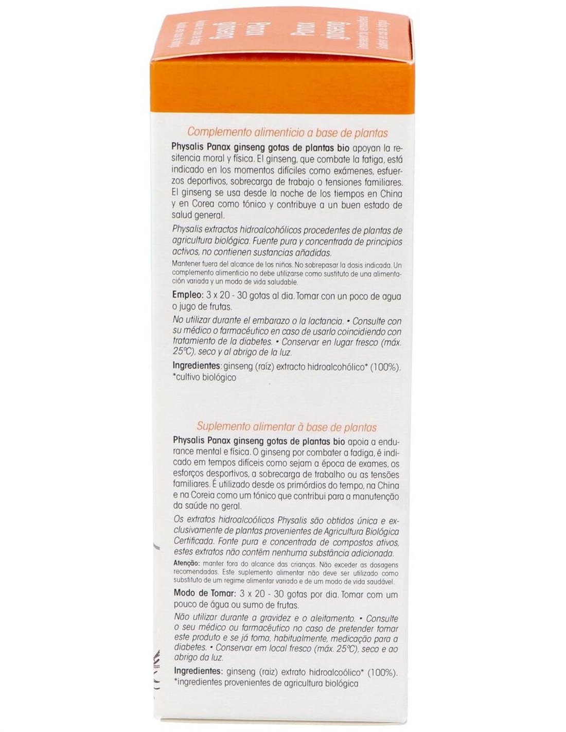 Physalis Ginseng Extracto Hidroalcohólico Bio 100ml es un complemento alimenticio, que contribuye a mejorar la resistencia moral y física. Su composición a base de plantas naturales ayuda a combatir la fatiga en momentos puntuales donde se ejerce un sobre esfuerzo mental y/o físico. Además contribuye a tonificar el sistema nervioso, aumentando la energía, contribuyendo a regular los niveles de azúcar en sangre y colesterol. También ayuda a promover la relajación.