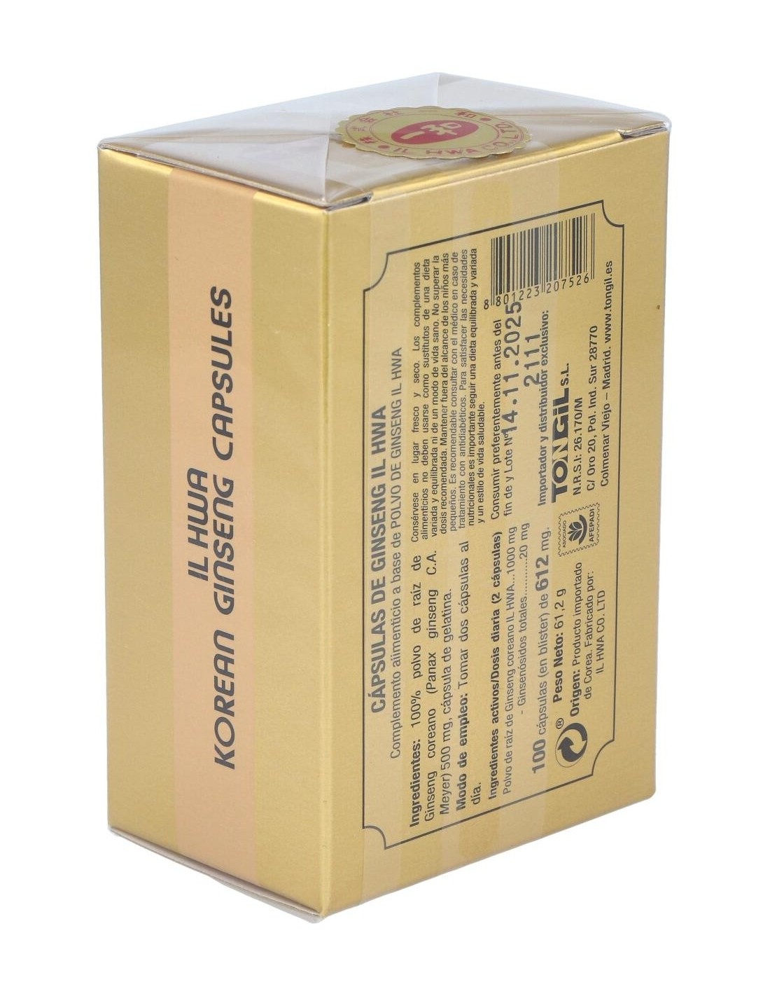Polvo micronizado de Raíces maduras de 6 años de Ginseng Coreano IL HWA ...500 mg