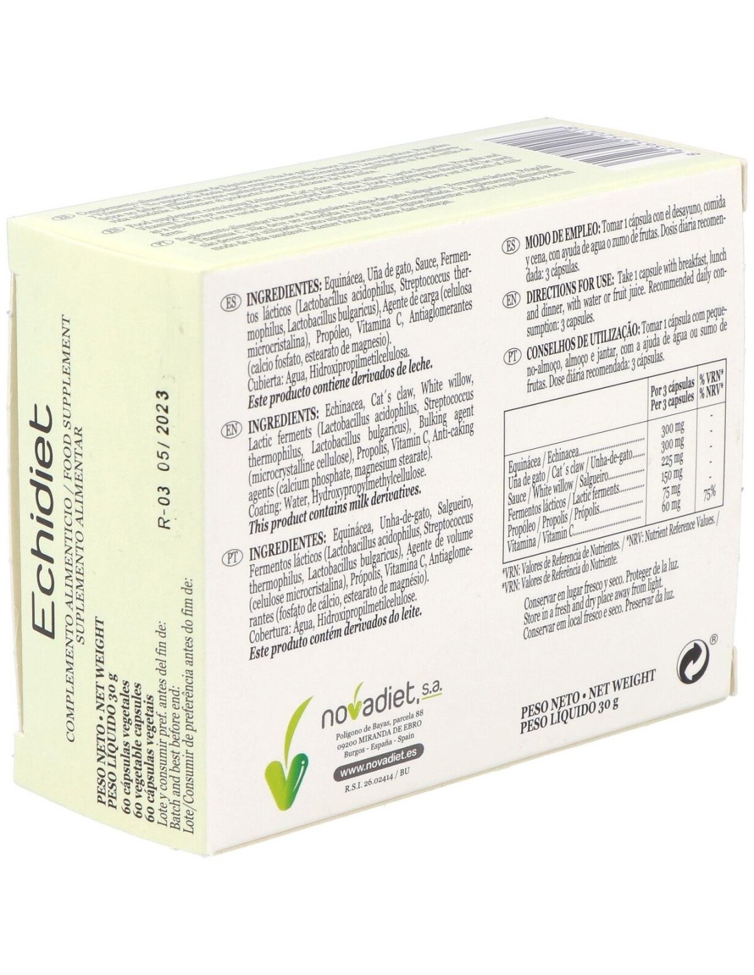 Las cápsulas Novadiet Echidiet ayudan a que nuestro organismo tenga el sistema inmunitario en correcto funcionamiento para poder combatir virus, bacterias y otros agentes externos dañinos, ayudándonos a mantenernos sanos y fuertes, especialmente en épocas en las que necesitemos una ayuda extra como cambios de estación, durante una convalecencia, épocas de estrés, etc.