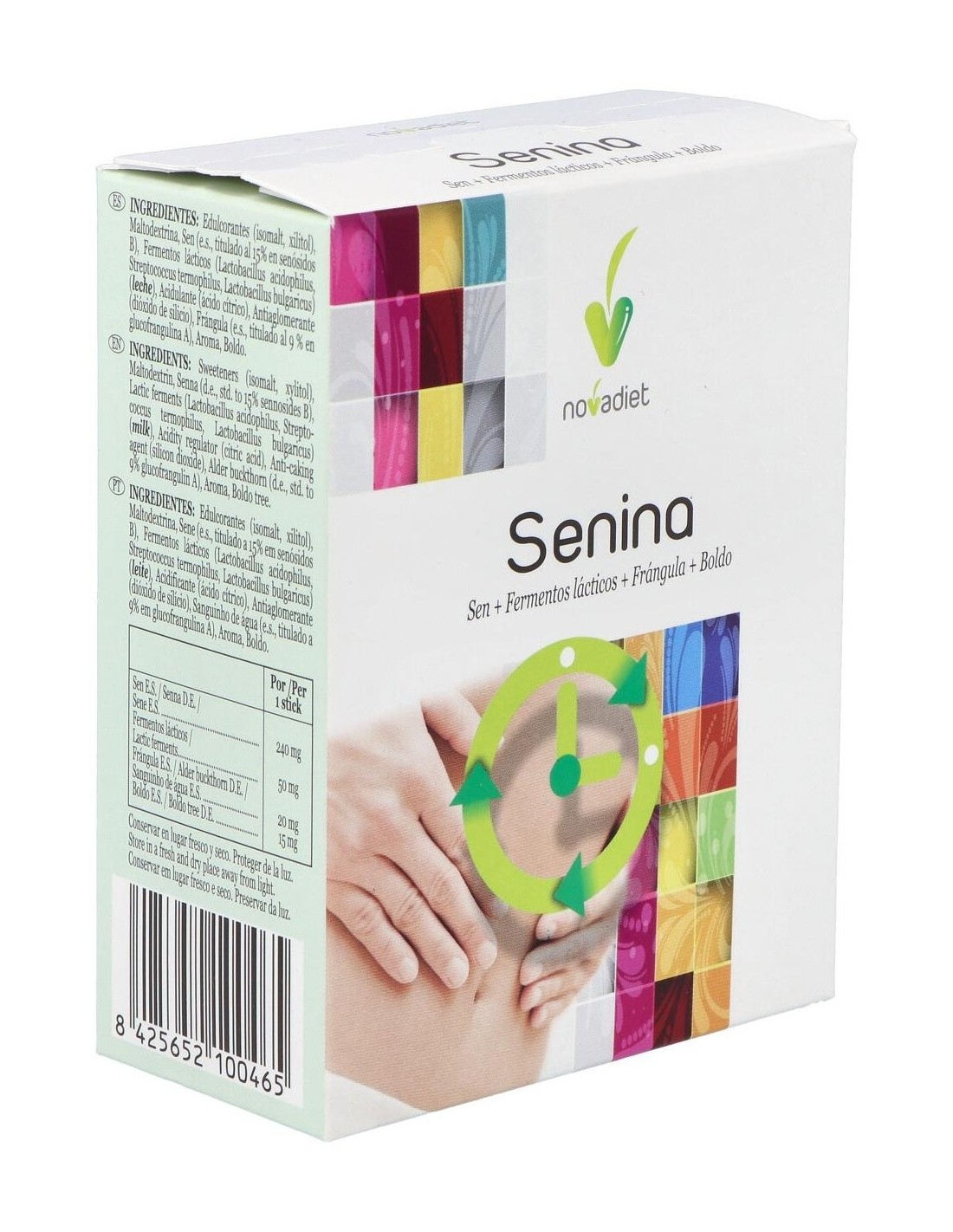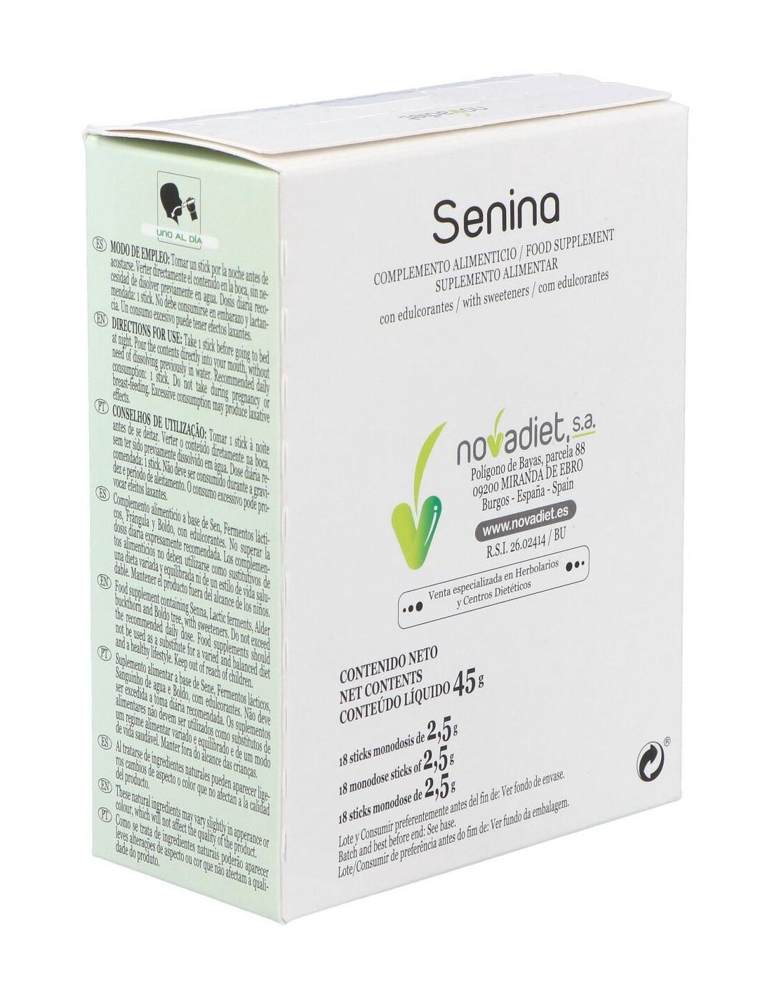 Los sticks Novadiet Senina, gracias a su fórmula, ayudan a la correcta evacuación de nuestro sistema digestivo, evitando el molesto estreñimiento y sus consecuencias cuando no se trata a tiempo, ayudándonos a sentir menos sensación de pesadez e hinchazón.