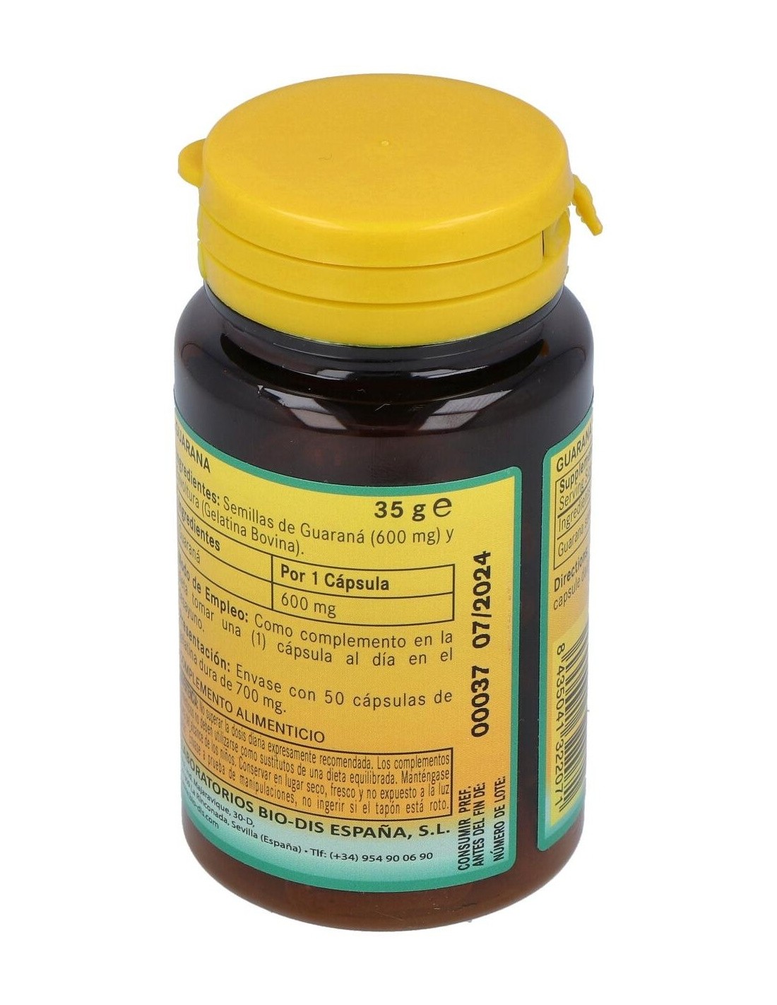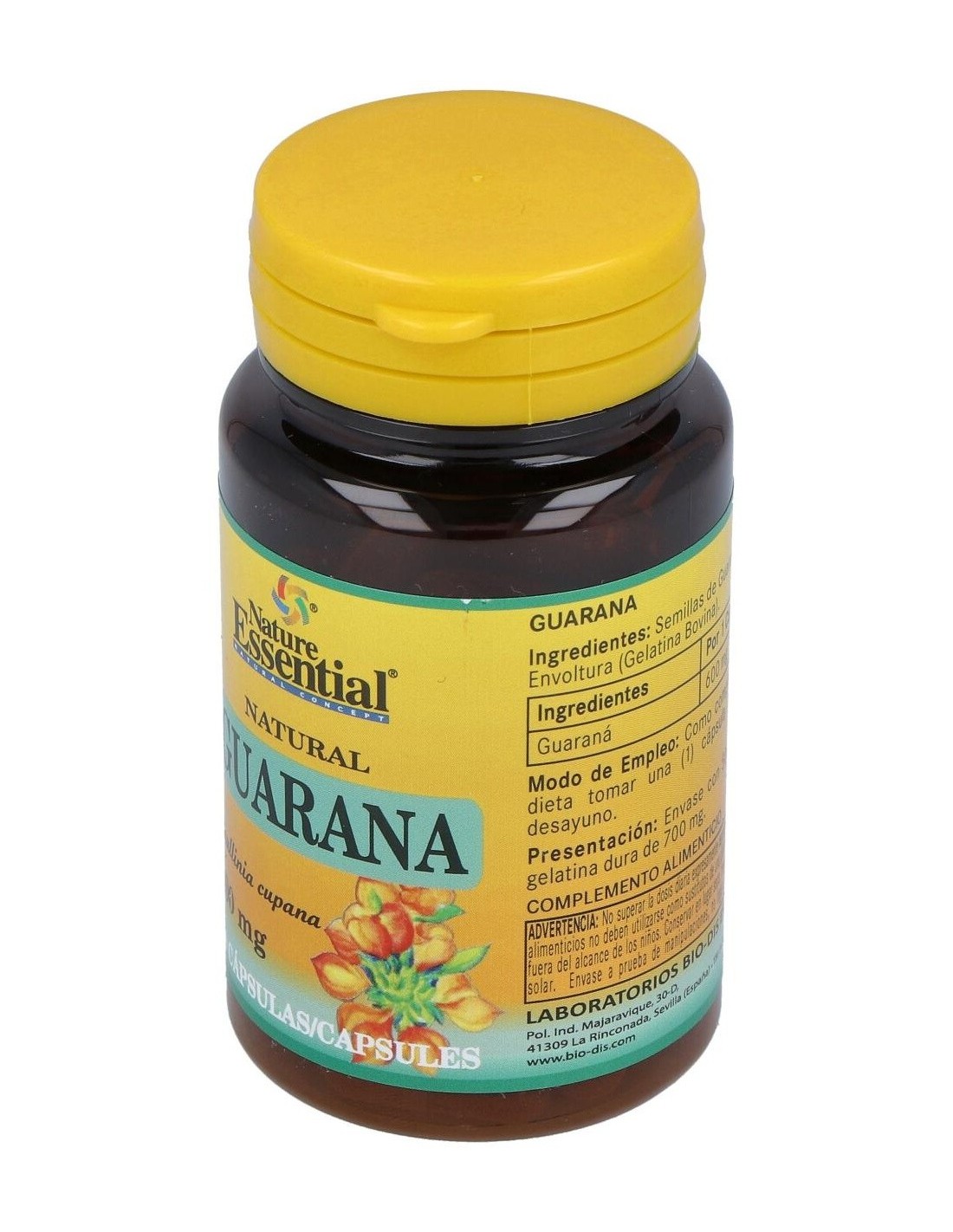 Suplemento alimenticio basado en extracto de Guaraná (Paullinia cupana) en formato de cápsulas de gelatina dura. El producto facilita diversos beneficios: Disminución de la sensación de fatiga y cansancio, promueve la circulación y el riego sanguíneo, ayudar a fortalecer las funciones cognitivas, siendo ideal para estimular la memoria, la concentración, etc. Las ricas propiedades del extracto resultan ideales para el organismo ya que promueve y estimula el correcto funcionamiento de la circulación y el cerebro. Advertencia de usos: No recomendado en mujeres embarazadas o bien en periodo de lactancia.