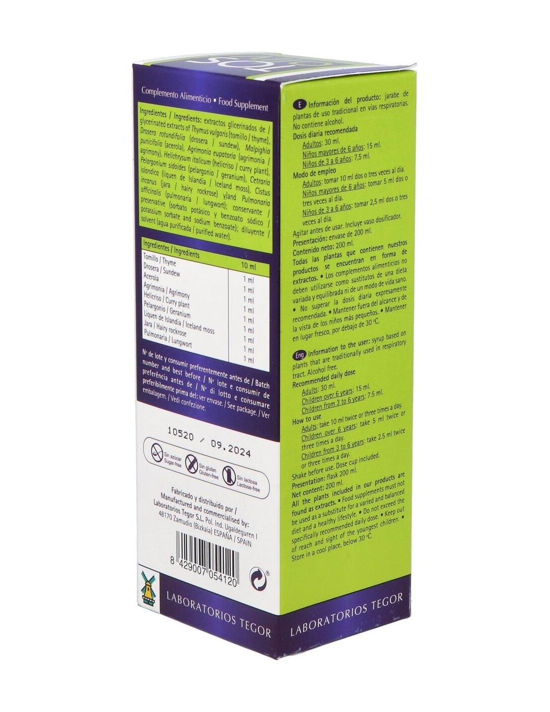 Complemento alimenticio formulado a base de extractos glicerinados de tomillo, acerola, helicriso y 6 plantas adicionales. Presentación en jarabe de 200ml. Ayuda a mantener las vías respiratorias en condiciones normales. A sus ingredientes se les atribuyen propiedades descongestivas y expectorantes. Indicado para adultos y niños.