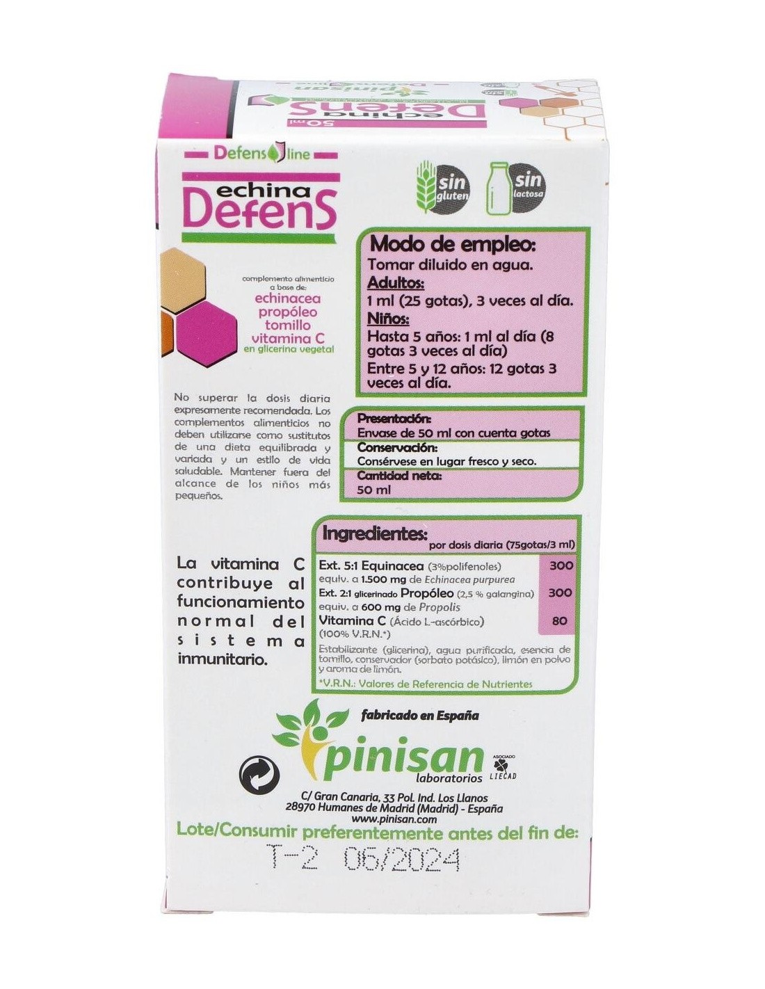 Pinisan Echina Defens es un complemento alimenticio que ayuda a las defensas gracias a su fórmula con ingredientes naturales que contribuyen al refuerzo del sistema inmunitaio.