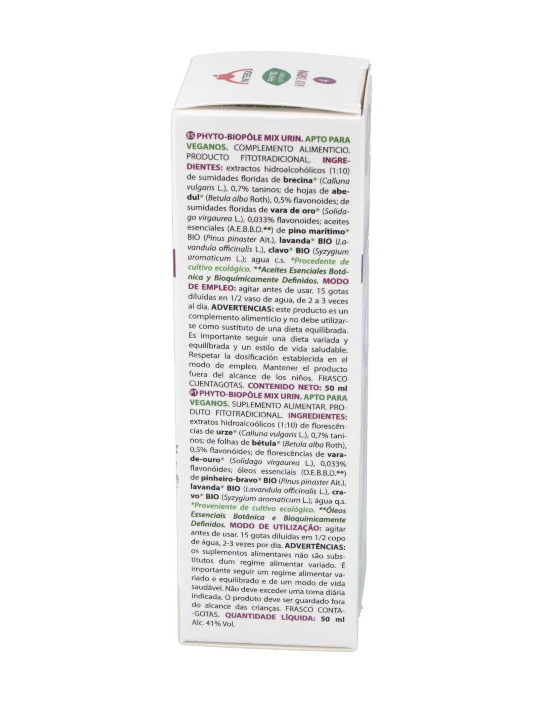 Complemento alimenticio formulado a base de extractos herbales hidroalcohólicos de abedul y vara de oro con aceites esenciales de pino y espliego procedentesde cultivo ecológico. Favorece el mantenimiento normal de las vías urinarias. A sus ingredientes se les atribuyen propiedades diuréticas y antiinflamatorias. Indicado para adultos.