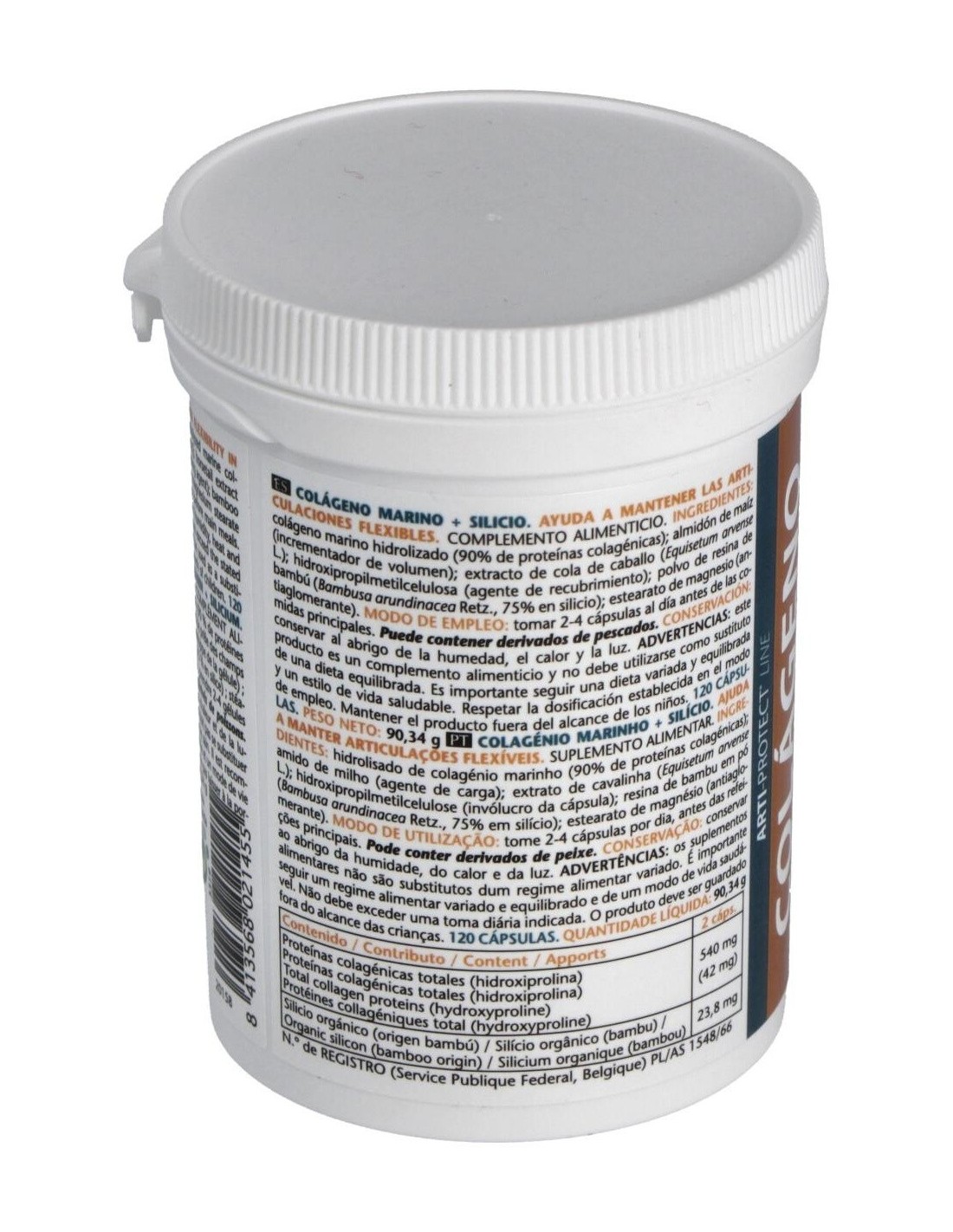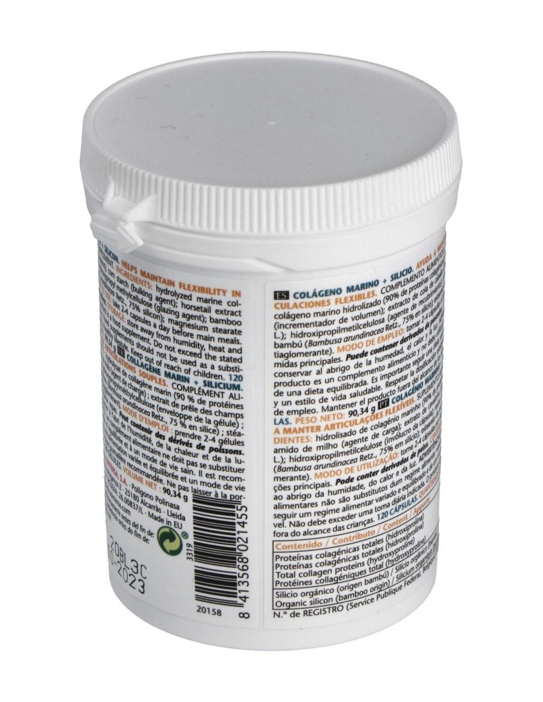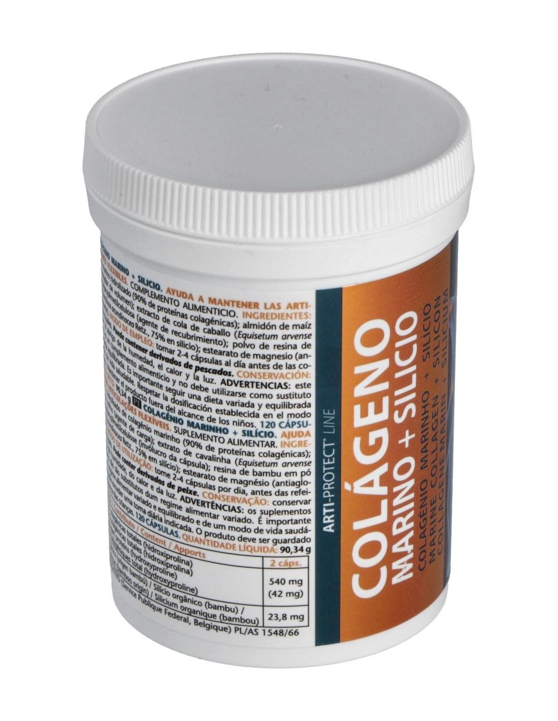 Complemento alimentico a base de la combinación de colágeno marino con el silicio. Contribuye a mantener las articulaciones flexibles. Favorece el funcionamiento de la piel, los cartílagos, tendones, articulaciones, uñas y cabello en buen estado. Contribuye a detener el desgaste de las articulaciones, dado por problemas de artritis, artrosis o reuma.