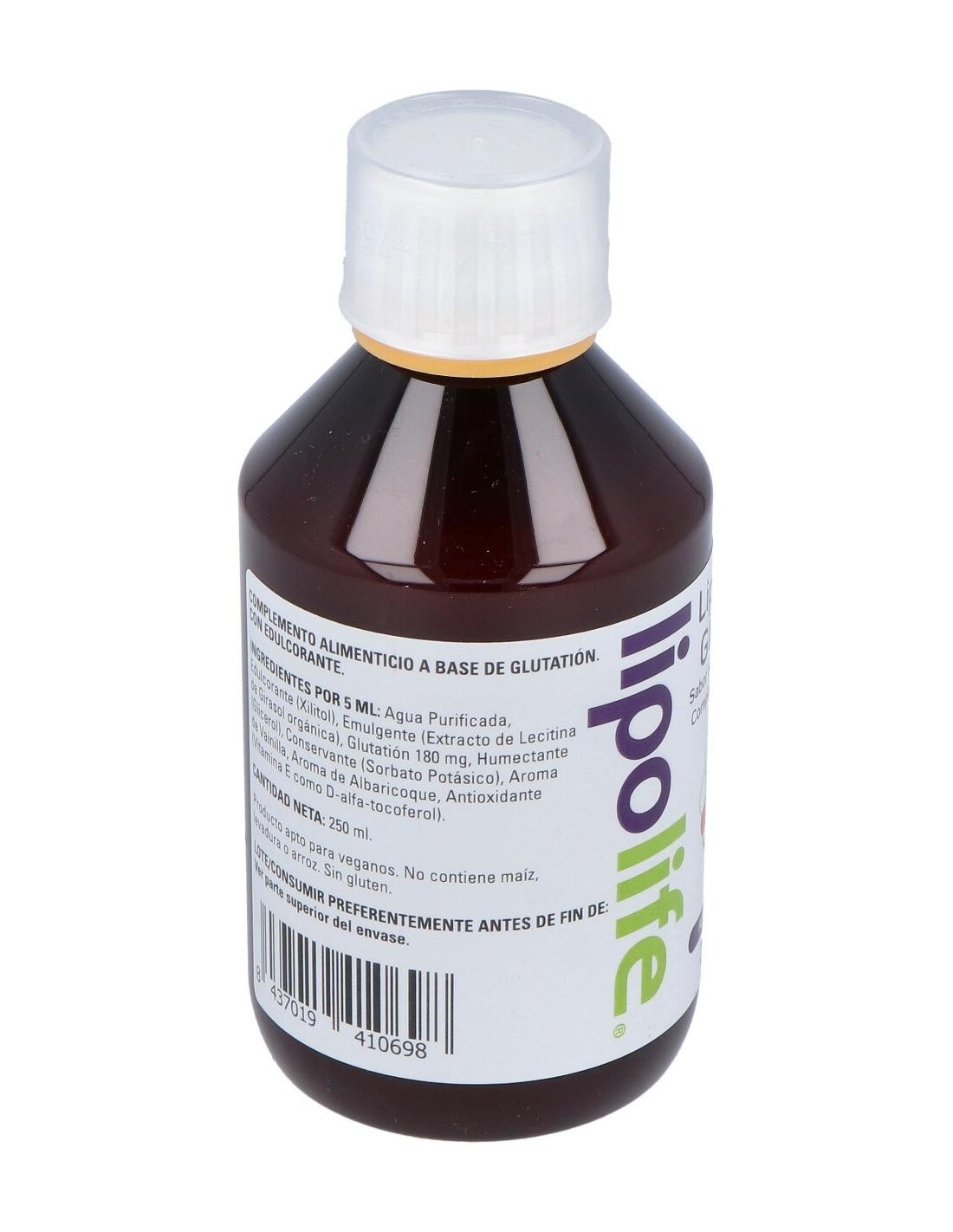 Glutatión, 180 mg: humectante (glicerol), aroma de vainilla, aroma de albaricoque, vitamina E como D-alfa-tocoferol.