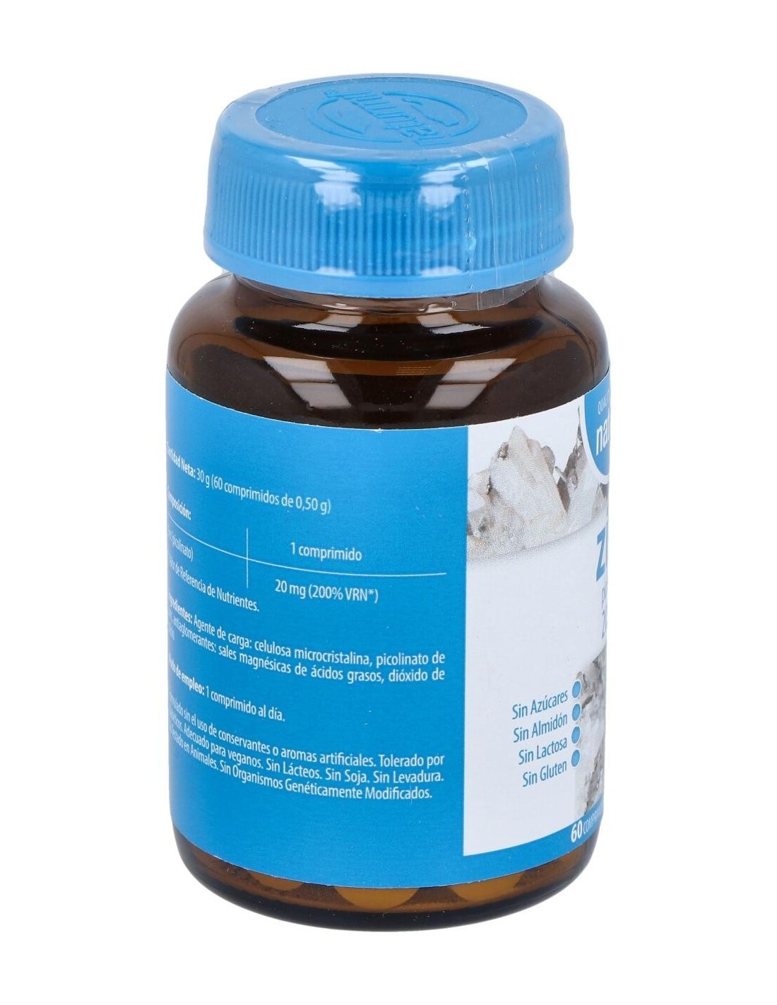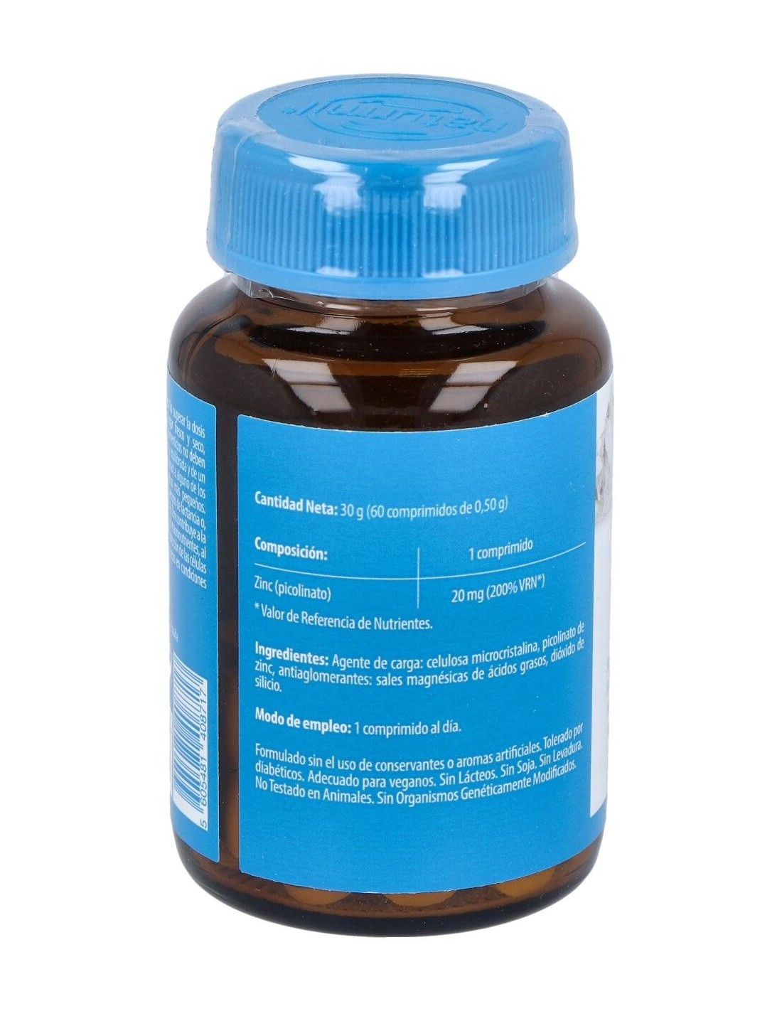 Por dosis diaria (1 comprimido) Zinc (picolinato) 20 mg (200%*) * Valor de referencia de nutrientes. INGREDIENTES: Agente de carga: celulosa microcristalina, picolinato de zinc, antiaglomerantes: sales magnésicas de ácidos grasos, dióxido de silicio.