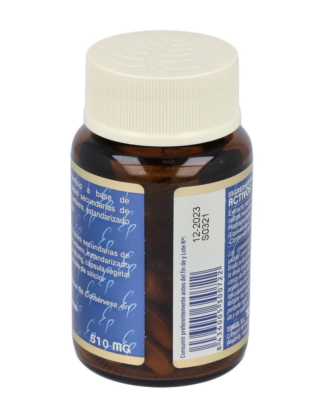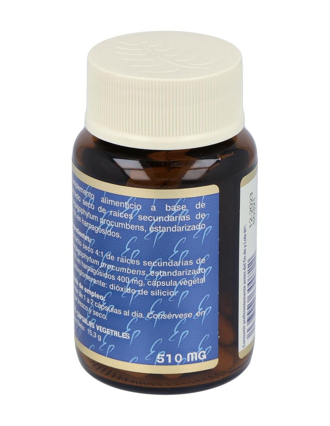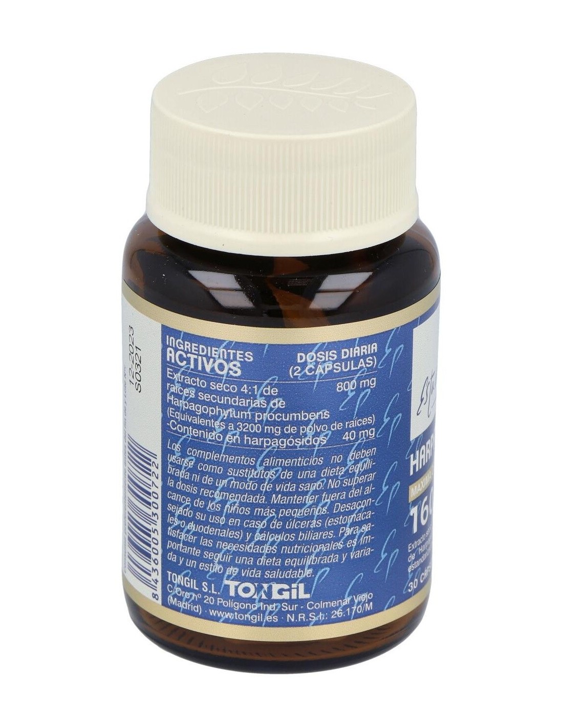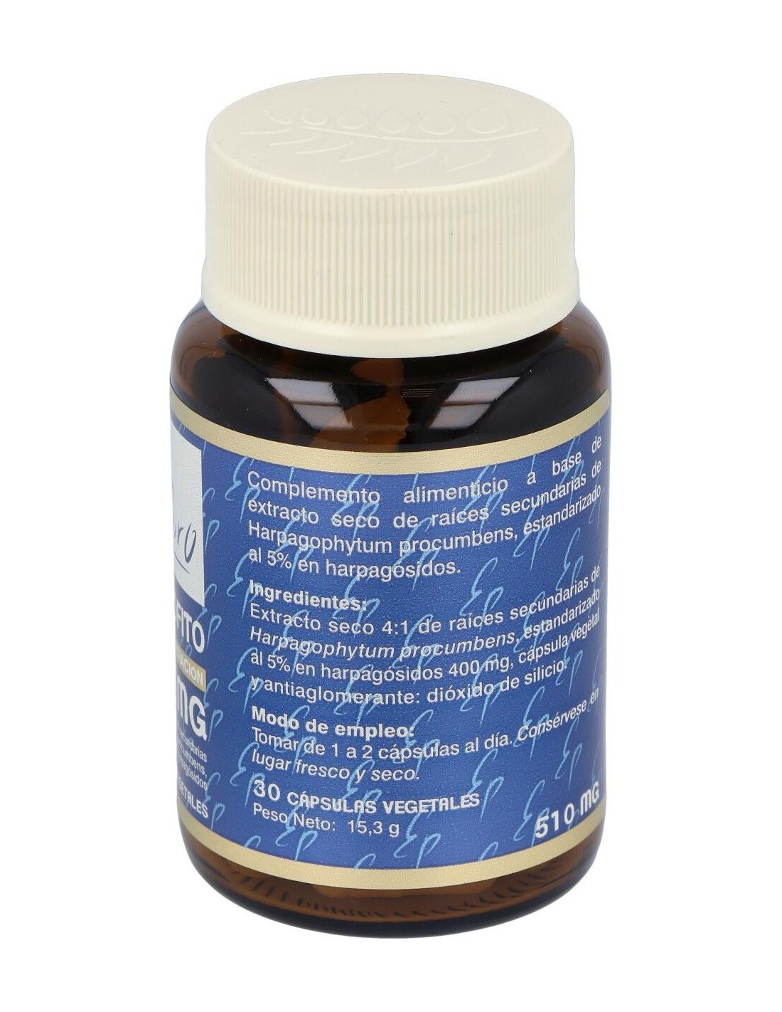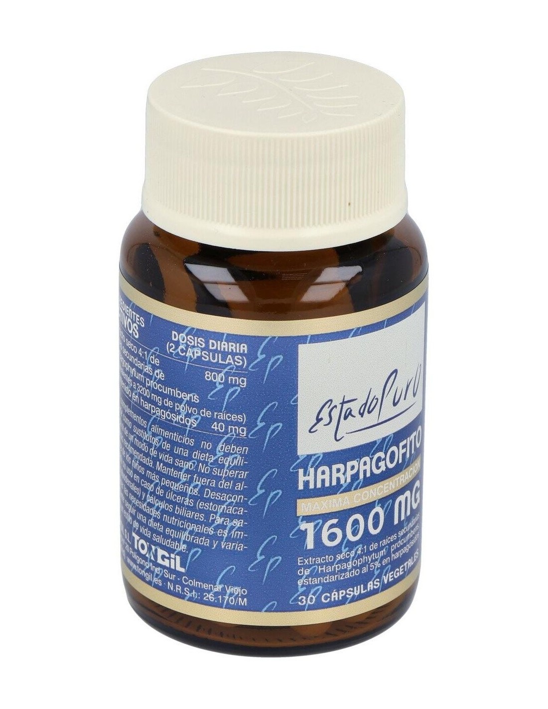 Extracto seco 4:1 de raíces secundarias de Harpagophytum procumbens (Equivalentes a 1600 mg de polvo de raíces)......................400 mg