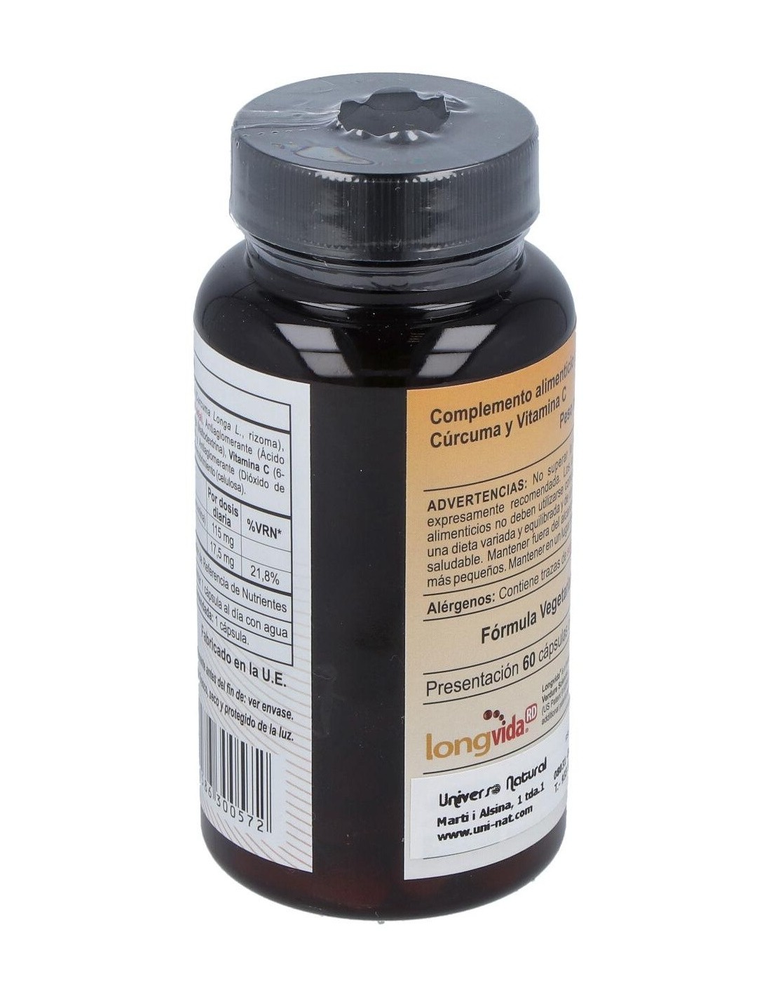 Por dosis: Curcuminoides 115mg, Vitamina C: 17,5mg (21,8% VRN)