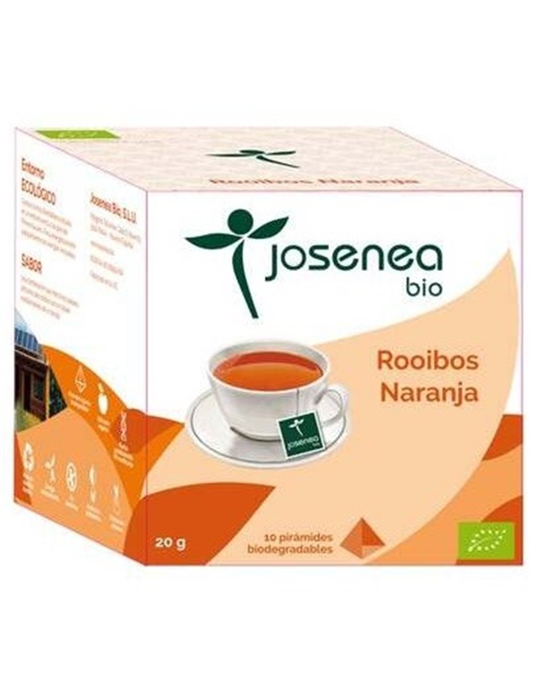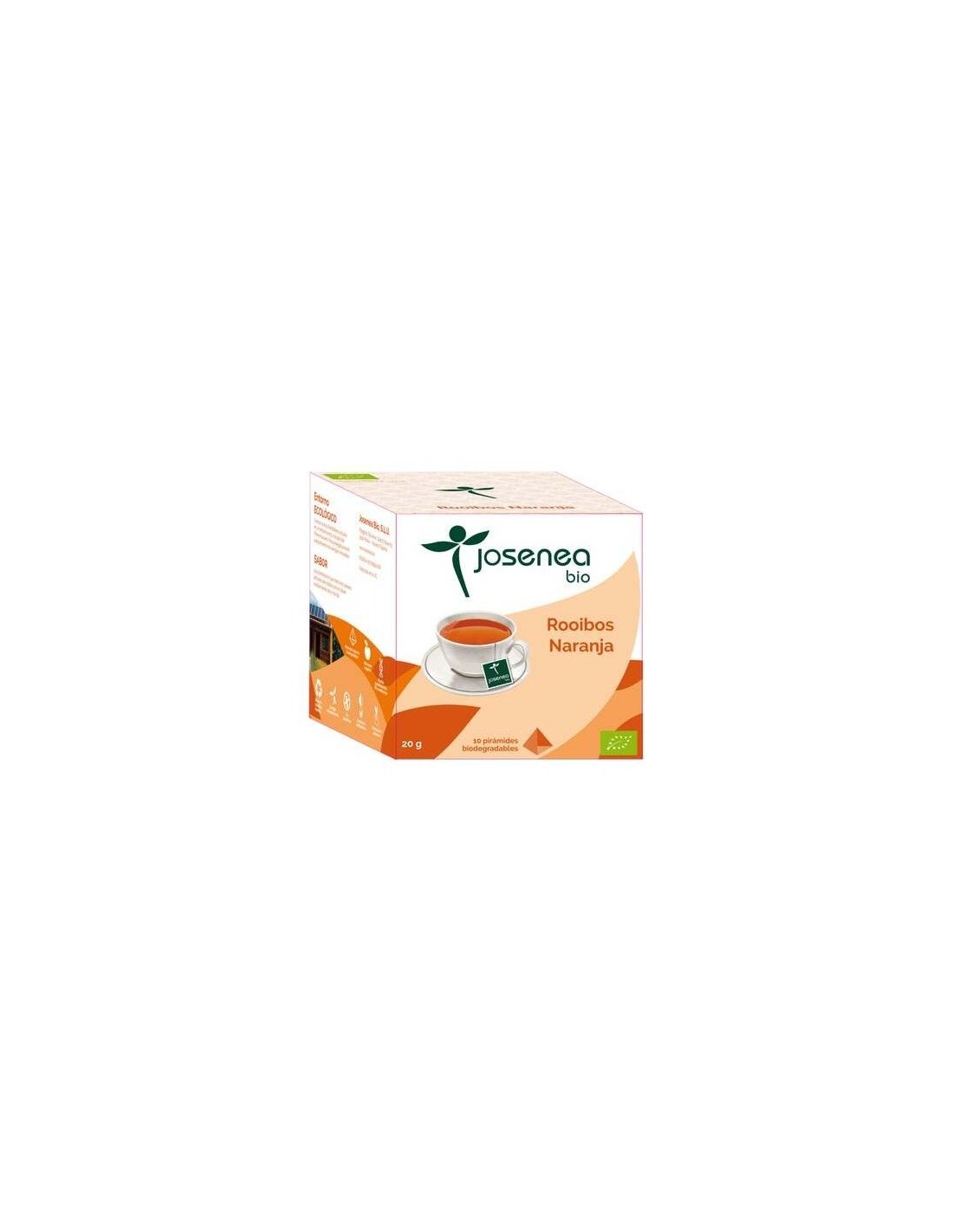 Josenea Rooibos con naranja BIO caja 10 pir es una combinación que mezcla los sabores africanos del rooibos con toques cítricos y mediterráneos de la naranja.