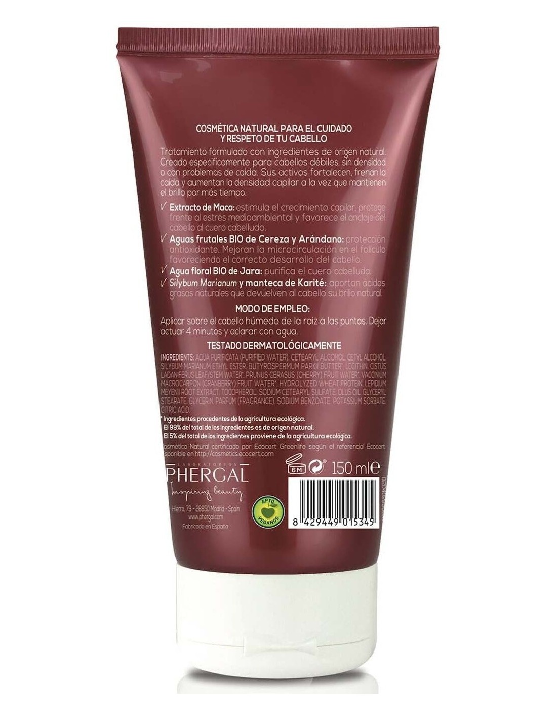 Su fórmula con extracto de maca, agua frutal de cereza y arándano, contribuyen a proteger el cabello frente al estrés medioambiental y ayudan a mejorar el anclaje del cabello al cuero cabelludo, además de cooperar en la micro estimulación del folículo, favoreciendo el correcto desarrollo del cabello.