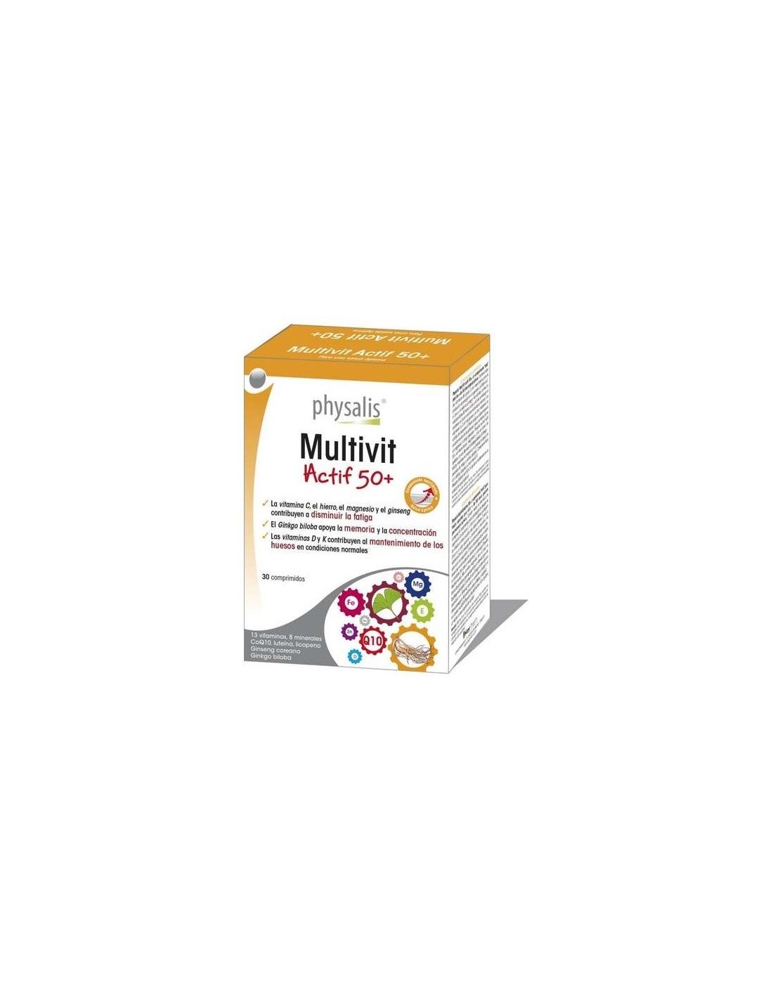 Comprimidos multivitamínicos especialmente diseñados para retrasar la aparición de los síntomas relacionados con la fatiga y el cansancio. Indicado para personas mayores de 50 años ya que contribuyen al correcto funcionamiento de los huesos, de la memoria y de la concentración. Su fórmula contiene vitamina C, vitamina D, vitamina K, hierro, ginkgo biloba, magnesio y ginseng.