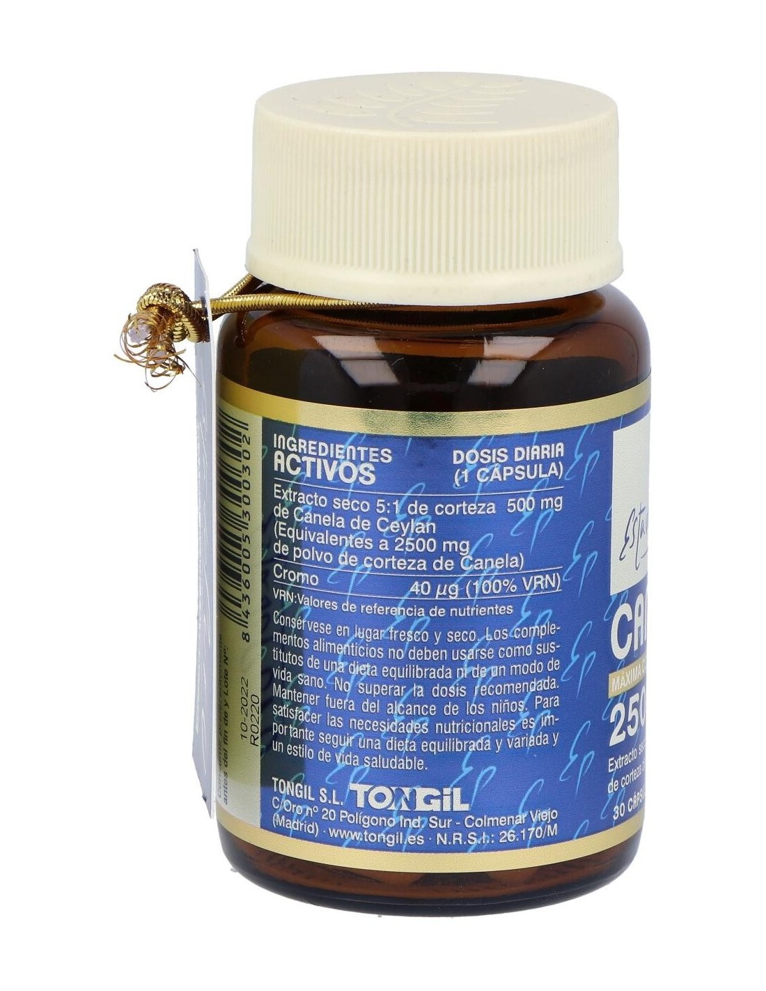 Extracto seco 5:1 de corteza de Canela de Ceylan (Equivalentes a 2500 mg de polvo de corteza de Canela)...........................500 mg