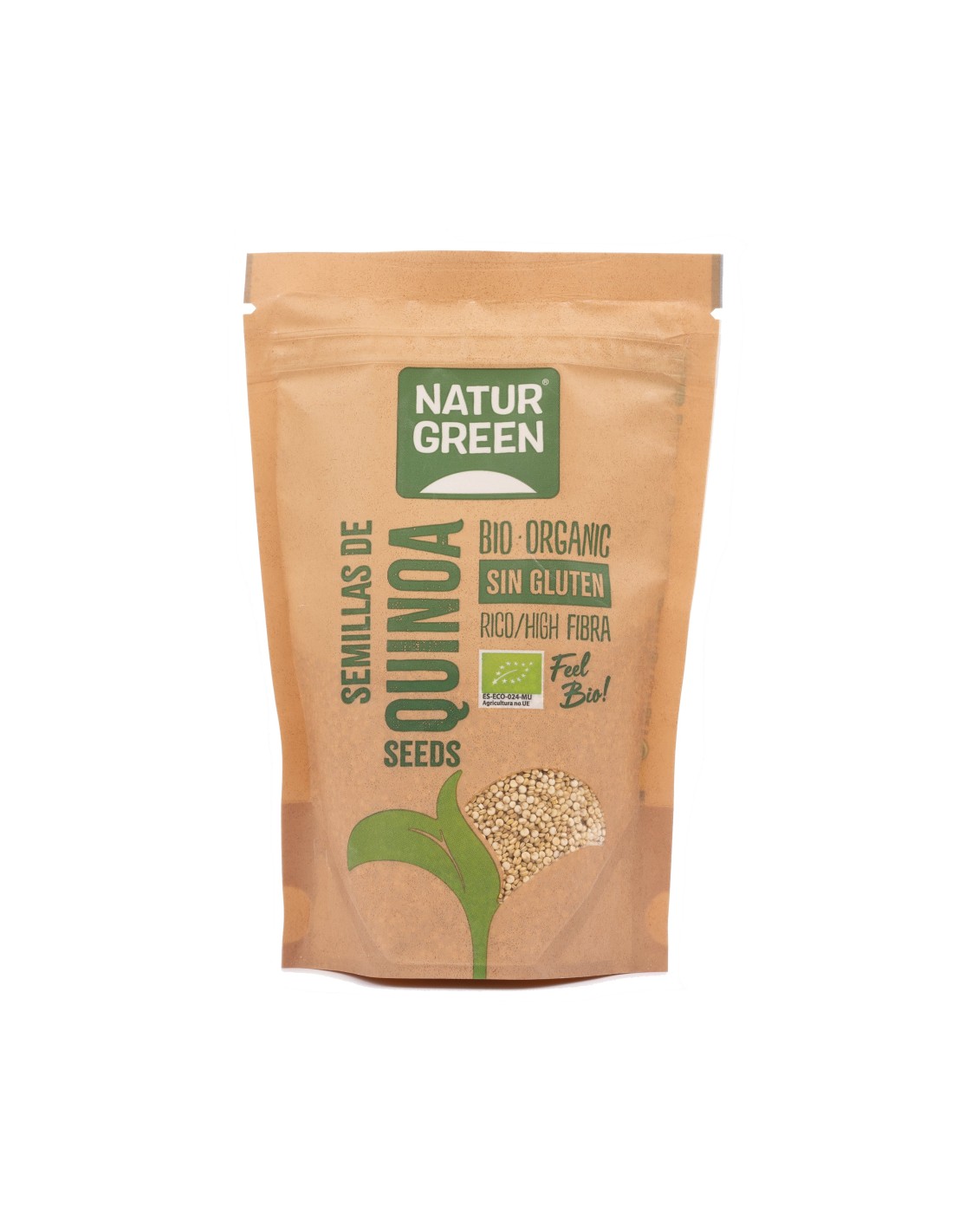 Naturgreen Bio Quinoa é elaborado com grãos selecionados que mantêm suas propriedades nutricionais graças a um processo cuidadoso. Seu formato permite fácil incorporação na culinária diária, fornecendo nutrientes essenciais sem alterar o sabor dos alimentos.