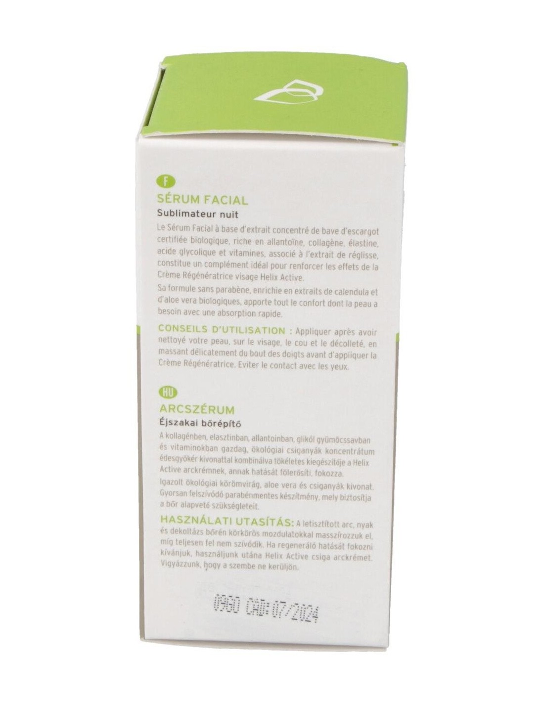 Fórmula a base de extracto concentrado de caracol ecológico certificado, rico en alantoína, colágeno, elastina, ácido glicólico y vitaminas, combinado con extracto de regaliz, que constituye el complemento perfecto para potenciar los efectos de la Crema Helix Active.