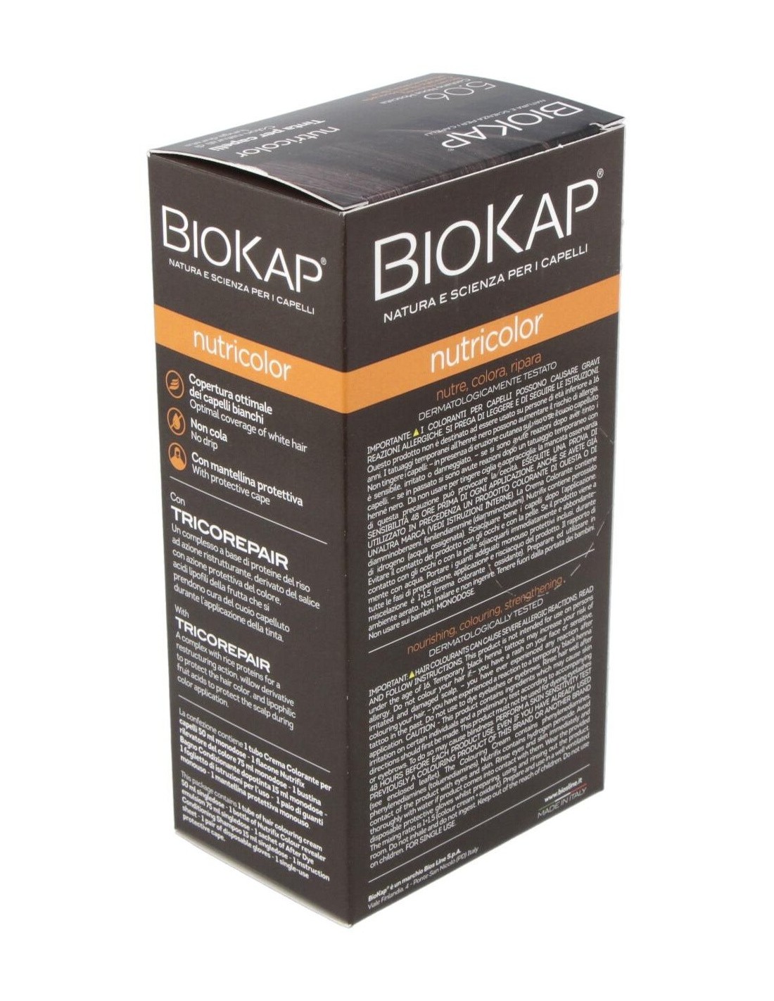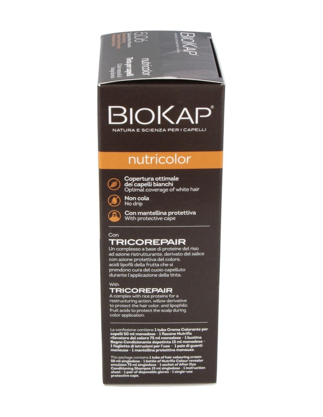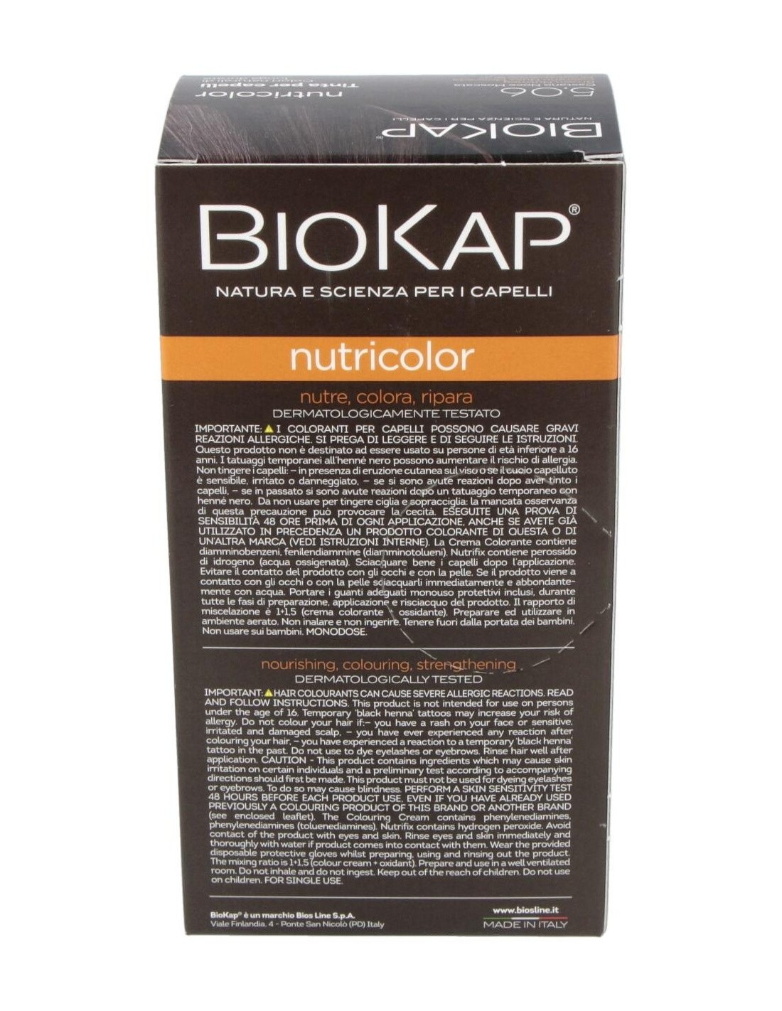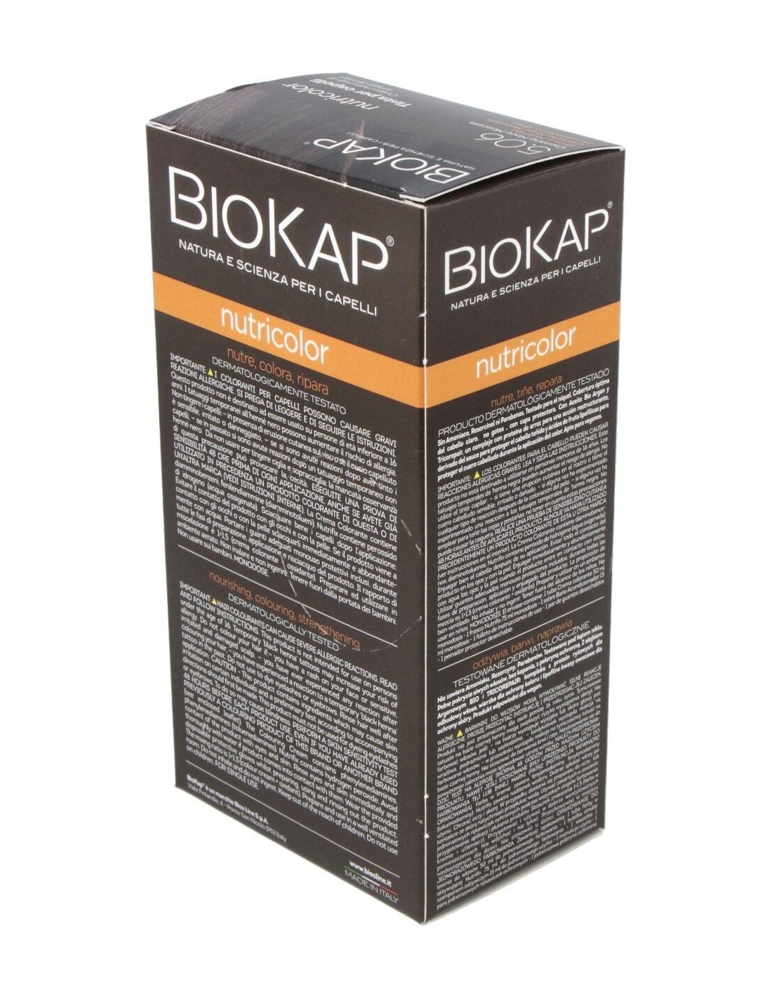 Nutricolor 5,06 Castaño Nuez Moscada 140 ml de Biokap es una solución de coloración capilar diseñada para personas que buscan un tono castaño con matices naturales y un cuidado equilibrado del cabello. Este producto es adecuado para quienes desean una coloración que aporte uniformidad y un acabado suave.