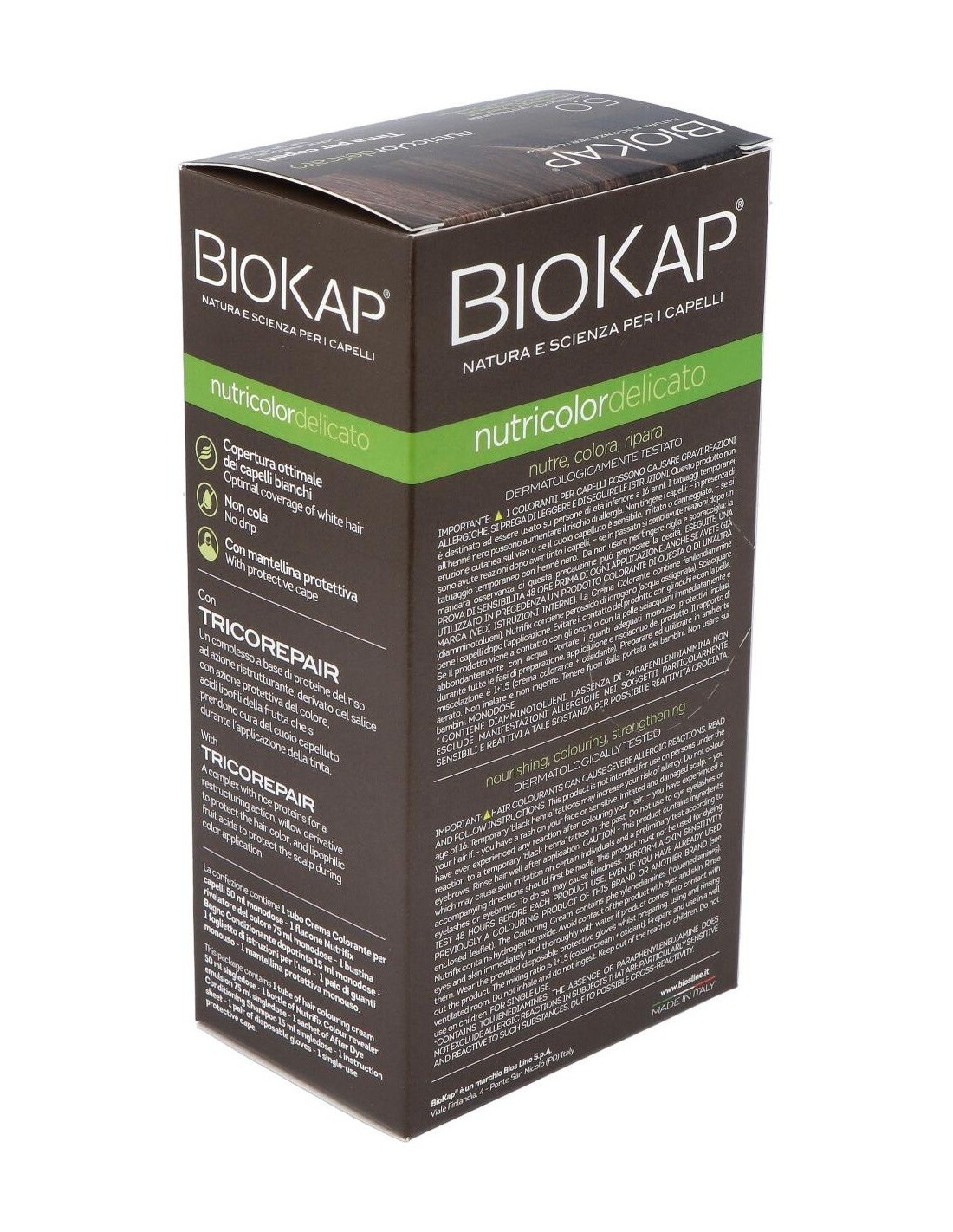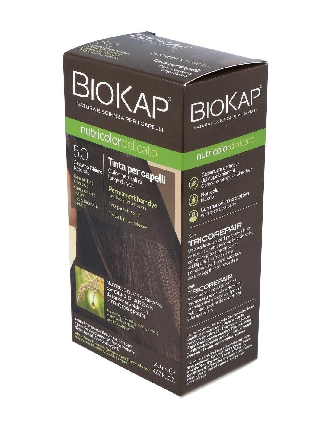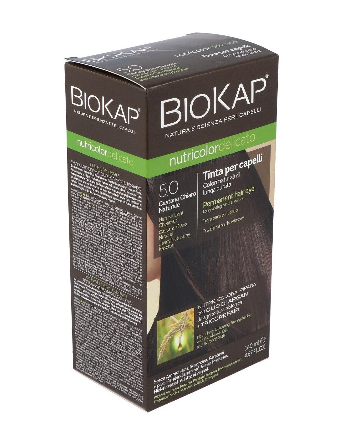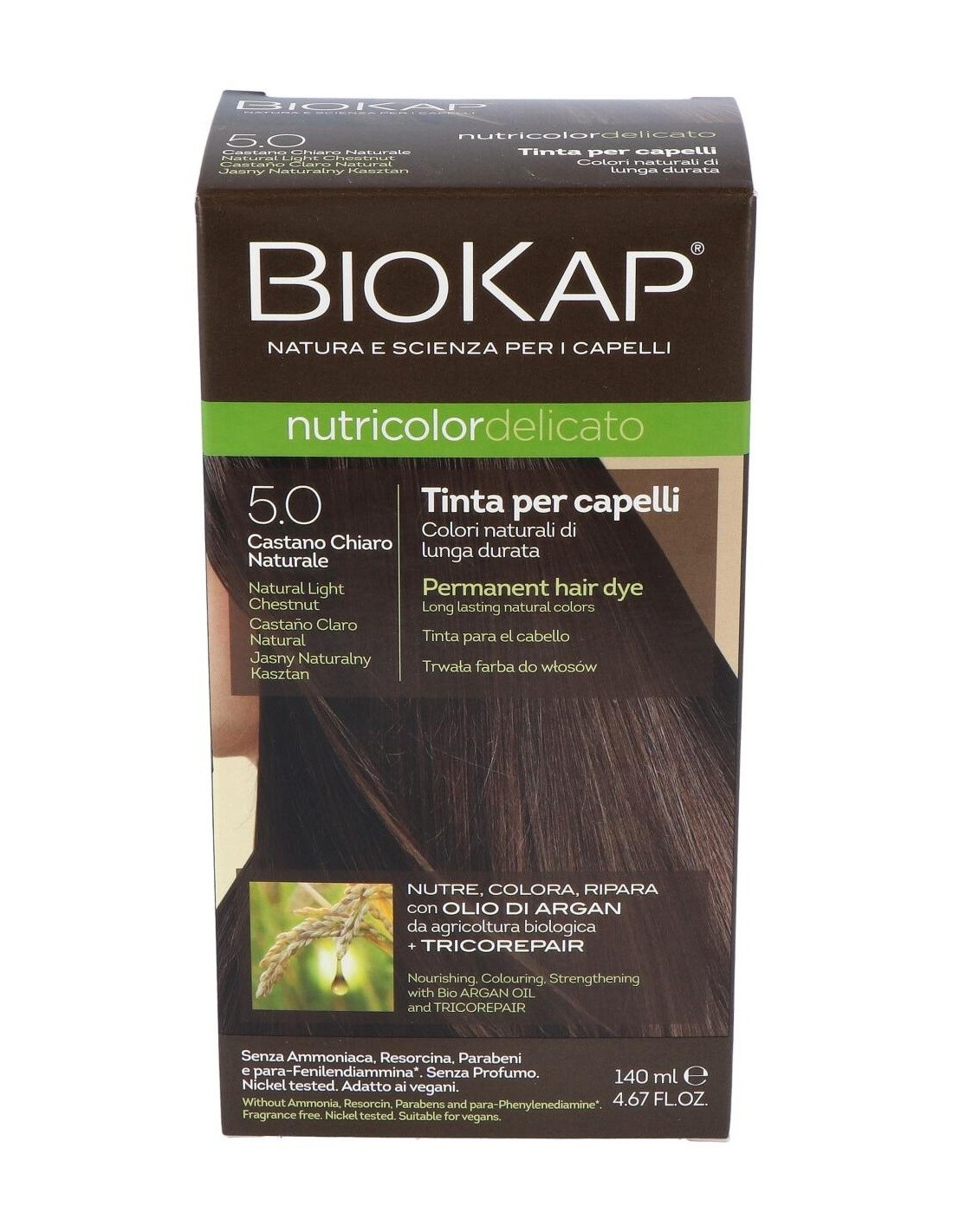 Delicato 5.00 Natural Light Brown 140 ml da Biokap é uma tintura de cabelo desenvolvida para quem busca um tom castanho claro com acabamento natural. Este produto foi desenvolvido para usuários que desejam uma coloração uniforme e cuidados delicados com os cabelos.