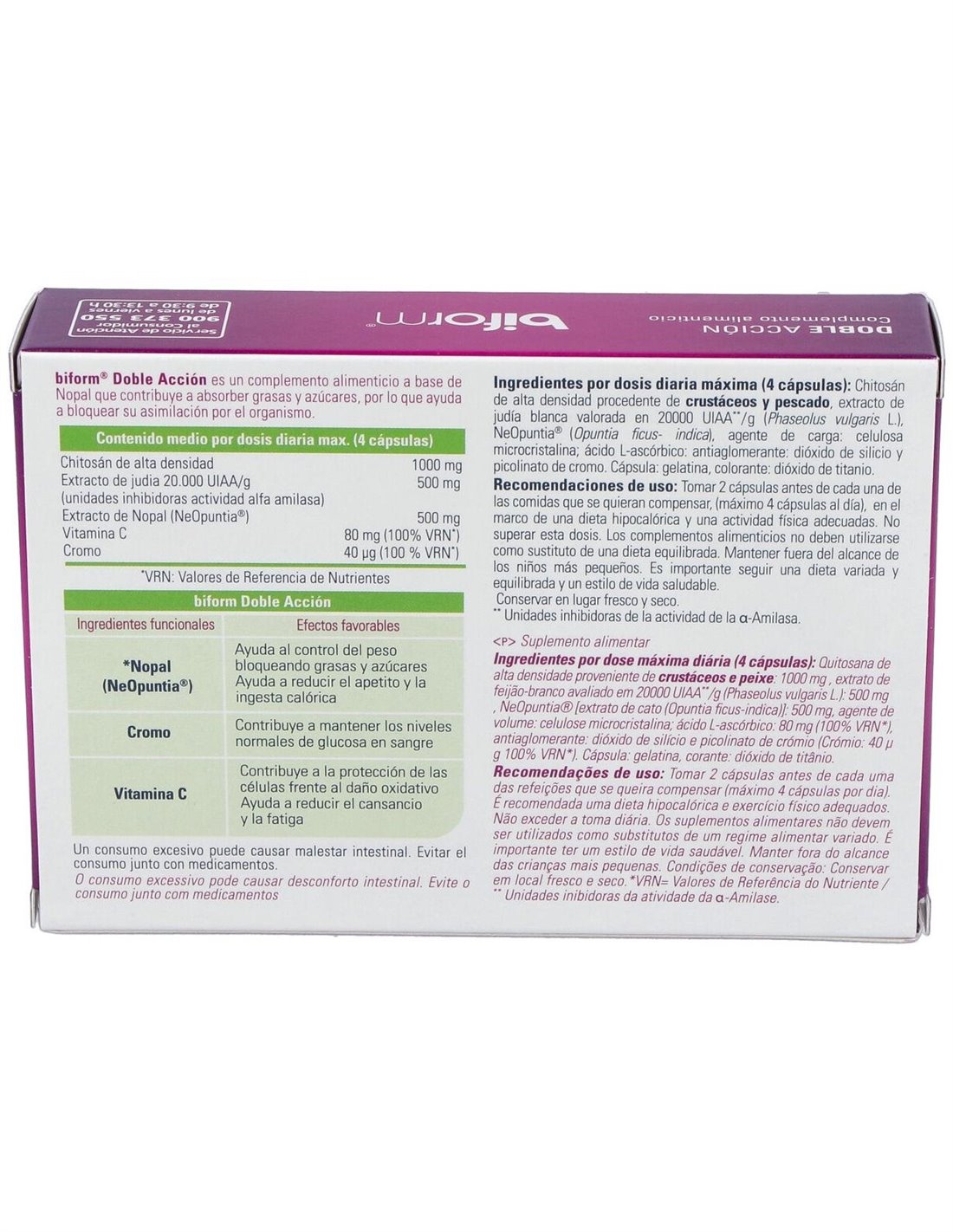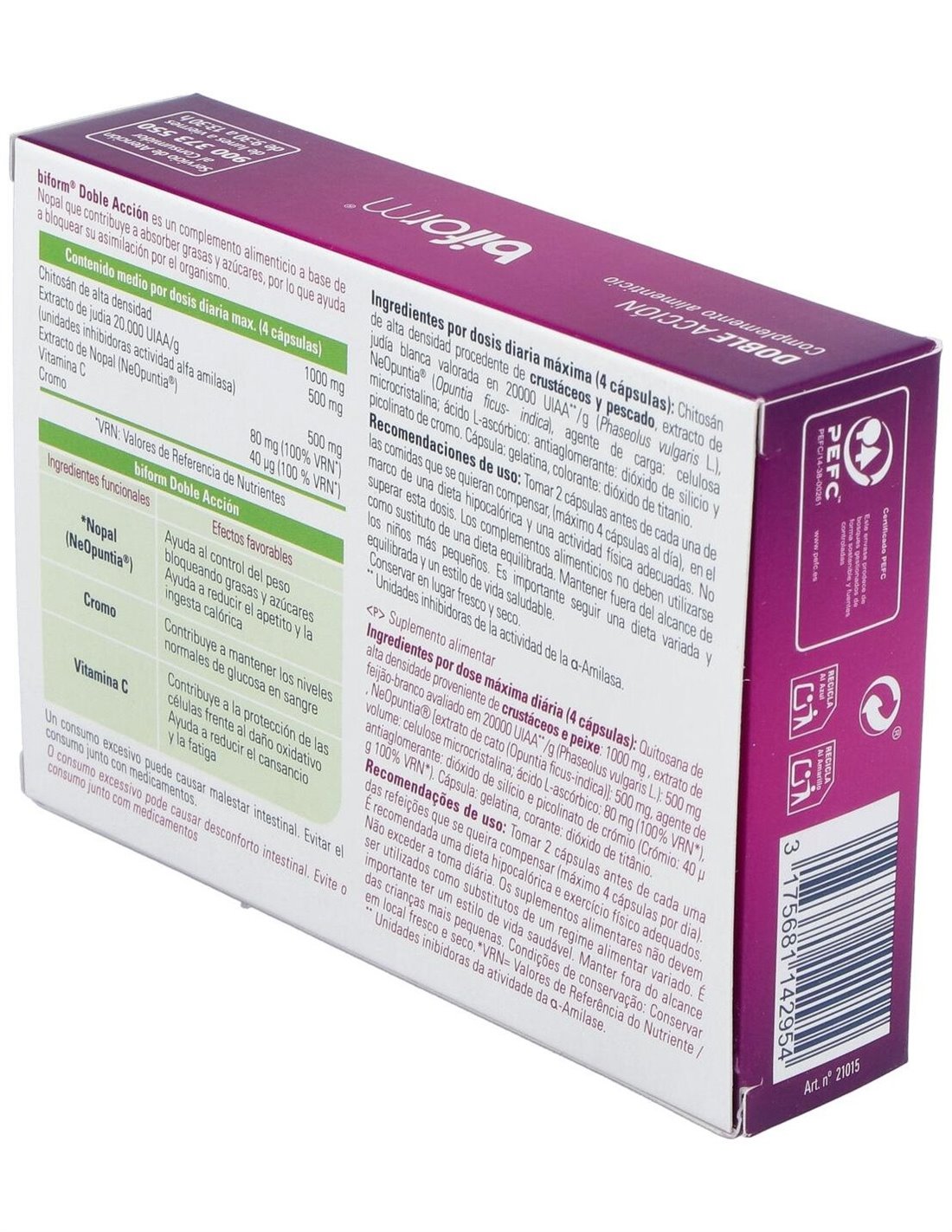 El **Doble Acción Envase 30 Cápsulas (15 Tomas) de Biform®** está diseñado para personas que buscan un complemento alimenticio que apoye su bienestar diario mediante una fórmula equilibrada. Este producto es adecuado para quienes desean mantener un estilo de vida activo y cuidar su salud de manera práctica.