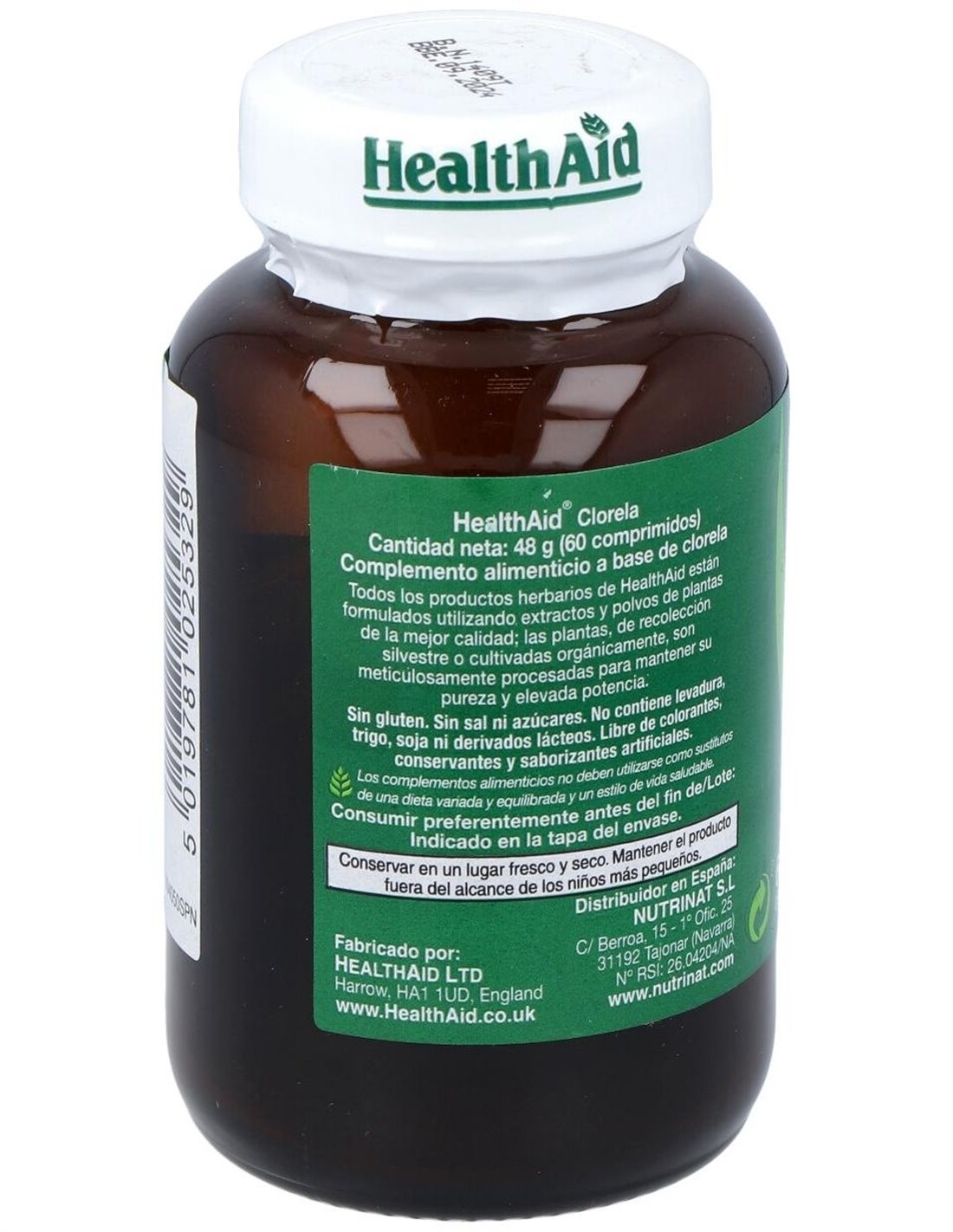 Chlorella 550Mg. 60Comp. Health Aid de Health Aid es un suplemento alimenticio diseñado para personas que buscan complementar su dieta con una fuente natural de nutrientes. Es adecuado para quienes desean incorporar un producto basado en algas verdes con un perfil nutricional equilibrado.