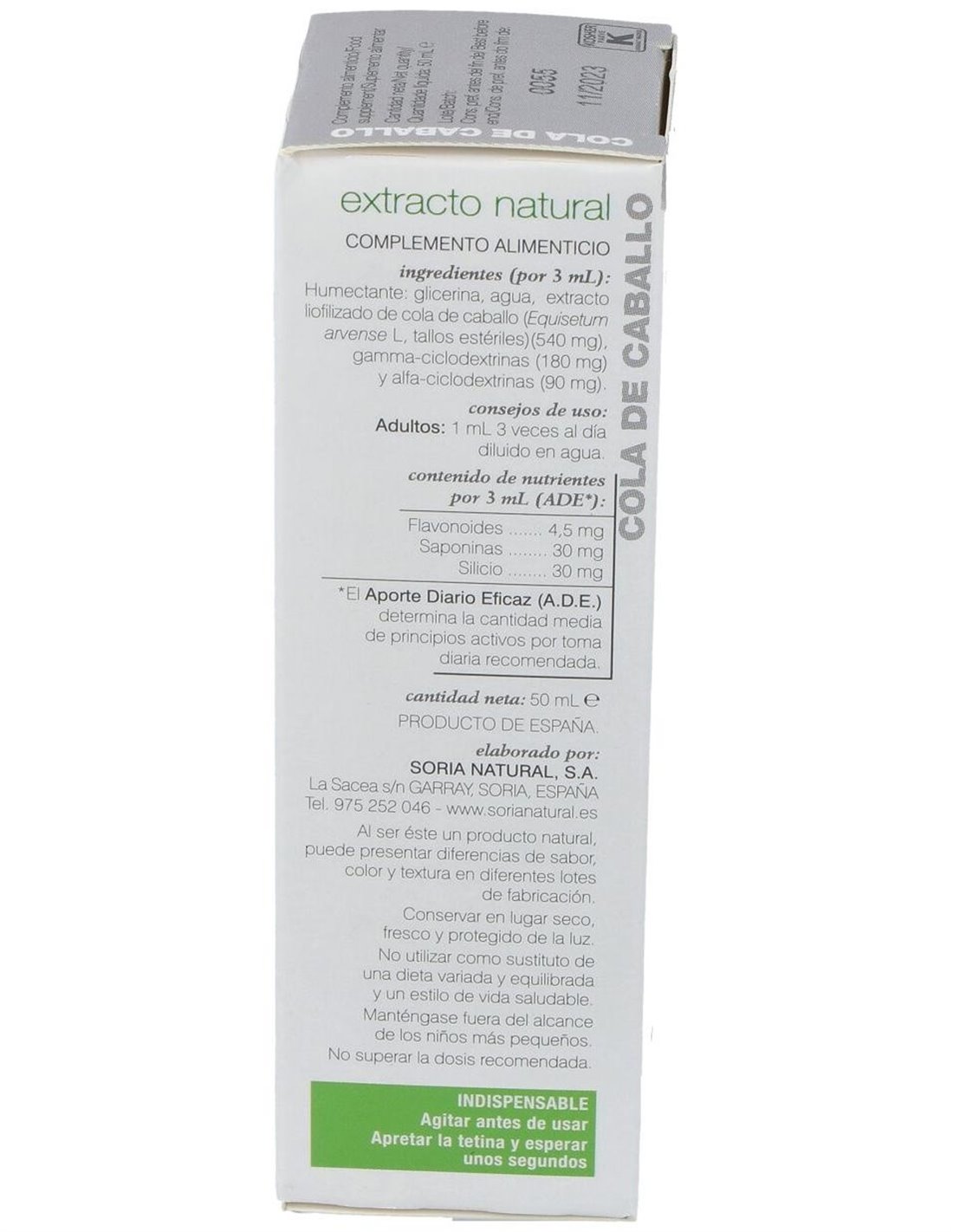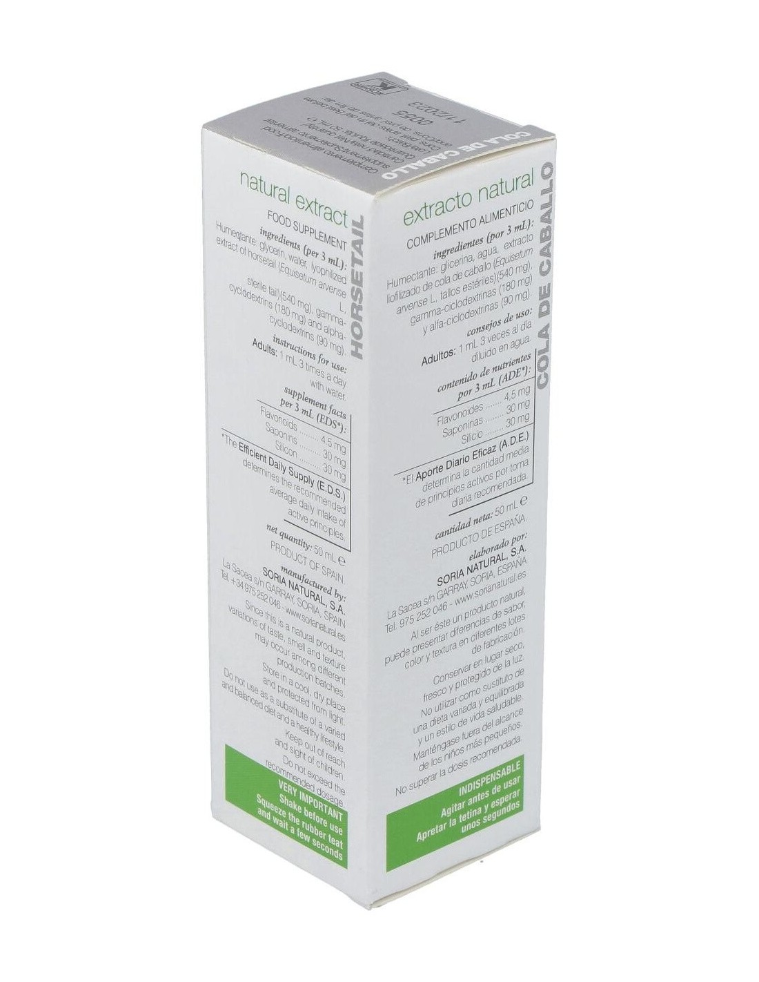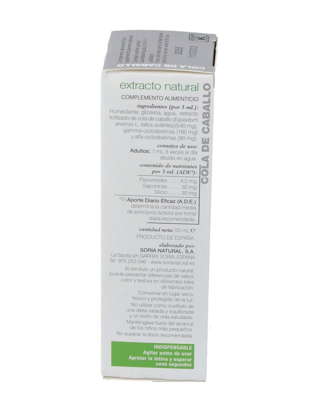 El Extracto de Cola de Caballo XXI 50 ml de Soria Natural es un complemento pensado para personas que buscan incorporar ingredientes de origen vegetal en su rutina diaria. Su formulación está orientada a quienes valoran productos naturales con una presentación práctica y dosificada.