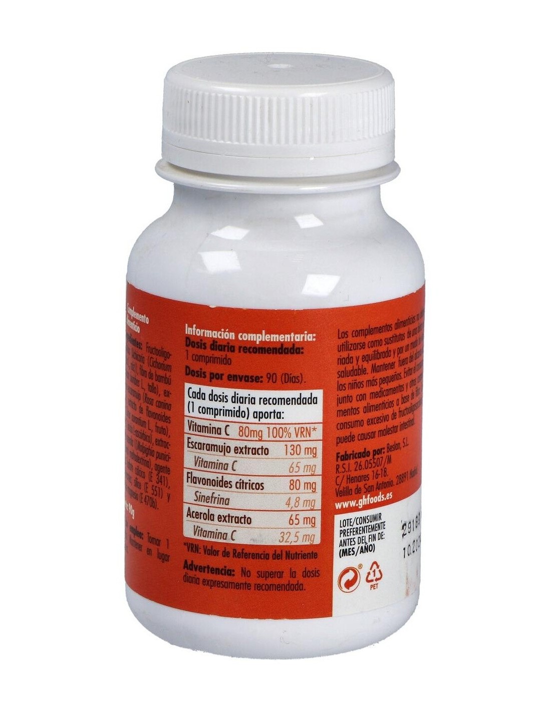 Vitamina C Complex 90Comp. de Ghf ofrece una opción práctica para complementar la ingesta de vitamina C, apoyando hábitos saludables de manera constante.