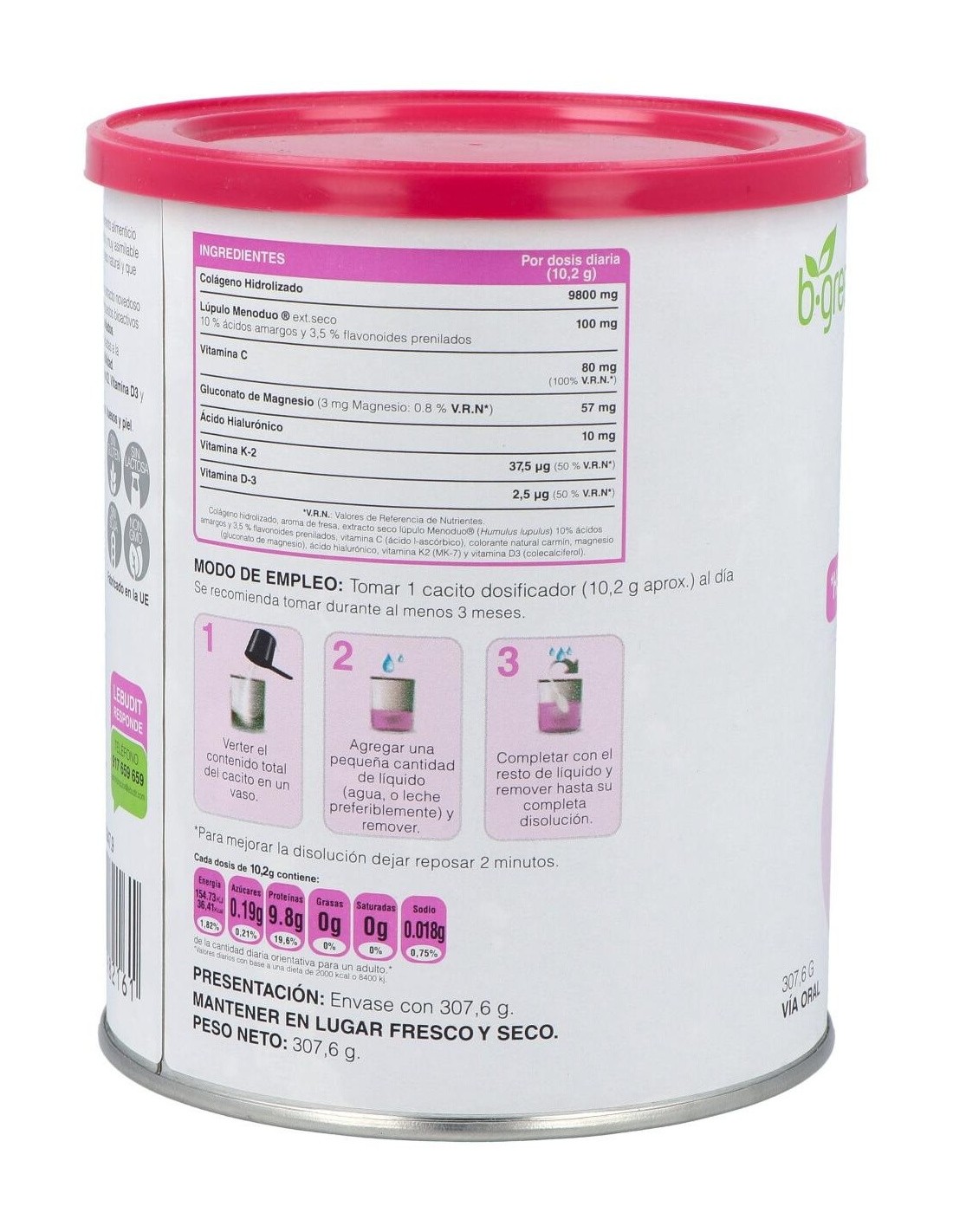 B.GREEN (LAB. LEBUDIT)COLAGENO HIDROLIZADO formula mujer 300gr. de B.GREEN