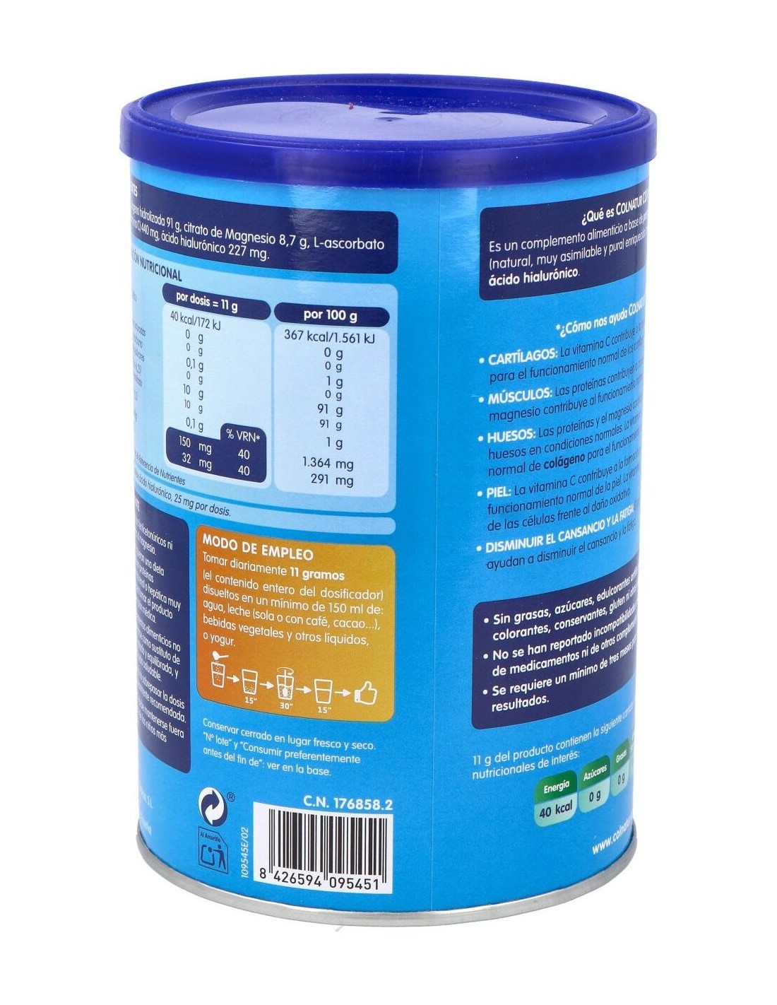 Suplemento con colágeno para apoyar la normal nutrición y regeneración de los tejidos colagénicos, en especial cartílago articular, músculos, huesos y piel. Sabor muy neutro.