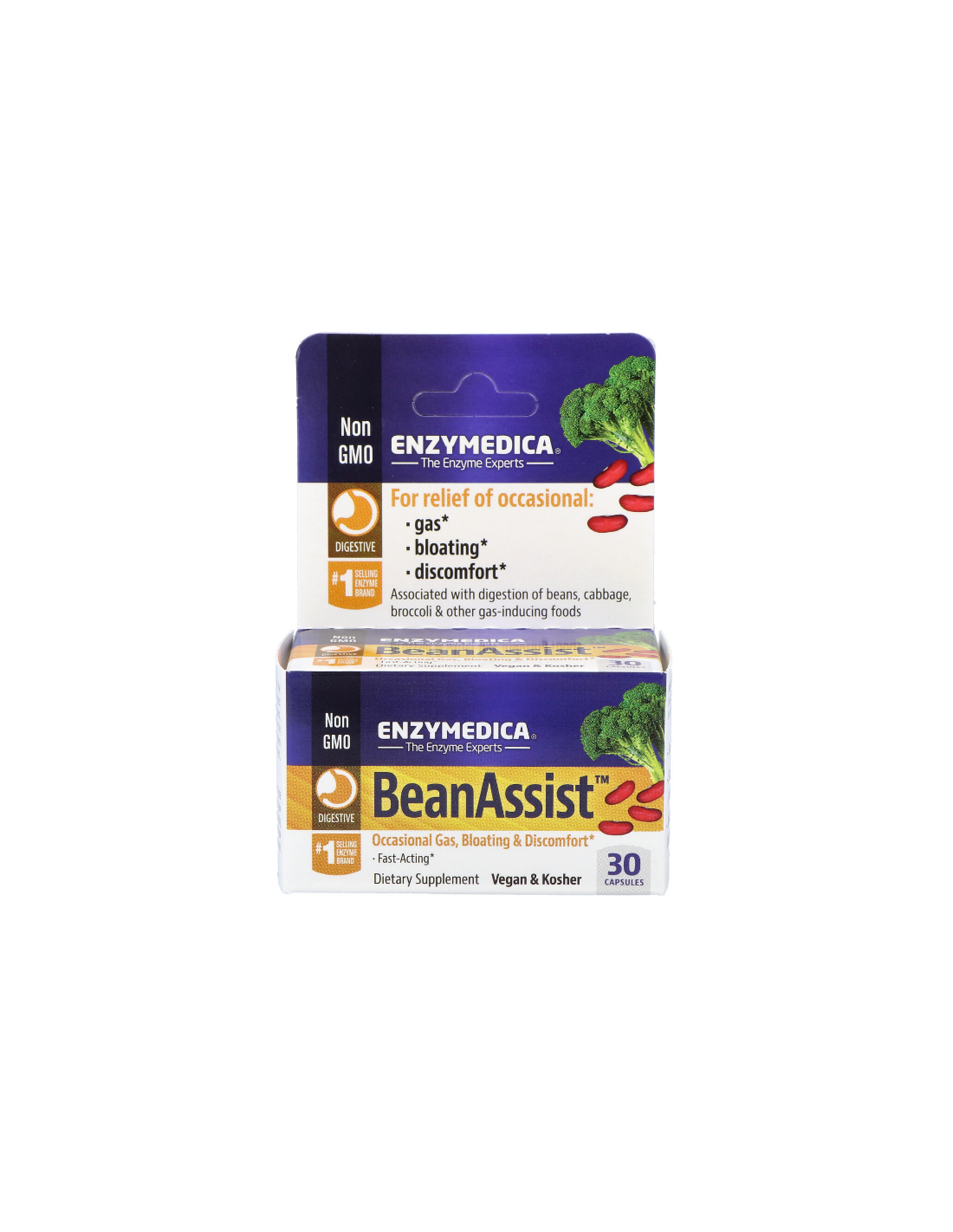 Complemento alimenticio a base de alfa-galactosidasa. Apto para vegetarianos, veganos y Kosher.