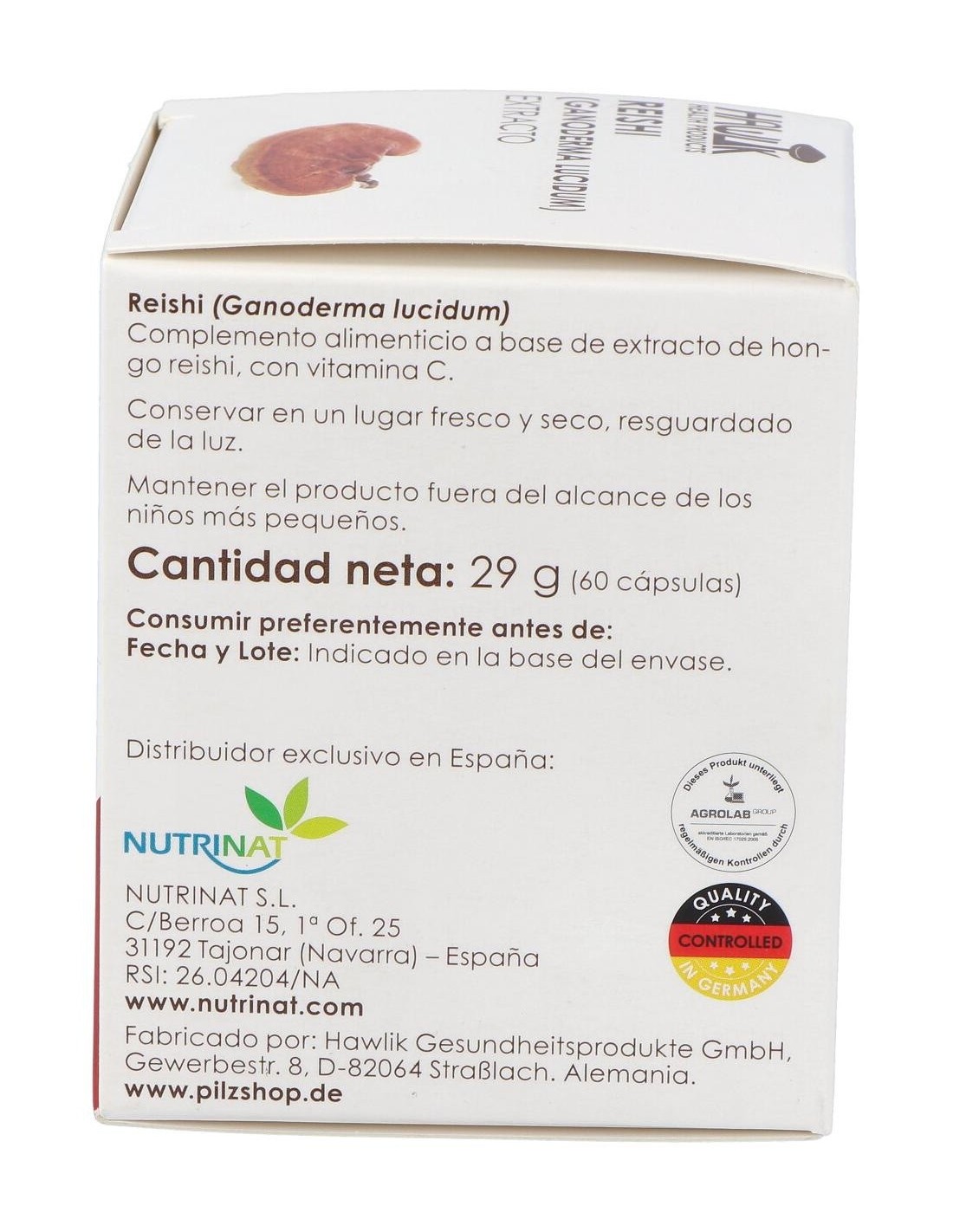 El reishi se encuentra en todas las partes del mundo, también como hongo doméstico en Europa. Ha sido cultivado en Asia desde hace 40 años. Concretamente, el reishi de Hawlik se cultiva en la provincia china de Fujian. Esta provincia está caracterizada por un clima húmedo subtropical.El reishi contiene como todos los alimentos de origen vegetal una variedad de sustancias bioactivas, con una contribución importante de micronutrientes, por ejemplo vitaminas, minerales, fibra y proteína.Los oxigenosteroles (ganoderoles) del reishi inhiben la síntesis de colesterol en el cuerpo, mediante la interacción con el ácido mevalónico. El ácido mevalónico es un precursor del colesterol, por lo que se interrumpe su formación. Los polisacáridos también pueden regular el metabolismo lipídico y prevenir la peroxidación lipídica de las grasas en la sangre.Las propiedades inmunomoduladoras de este hongo se derivan principalmente de los polisacáridos, atribuidos fundamentalmente a los beta-glucanos mejoran la proliferación de los linfocitos T y B y que refuerzan el sistema inmune.Las propiedades antiaterogénicas del reishi en el suero humano se conocen desde hace mucho tiempo. Además de apoyar la normalización de los niveles de lípidos en la sangre y el control de los niveles de colesterol, este hongo presenta unas marcadas propiedades antioxidantes.Propiedades:
