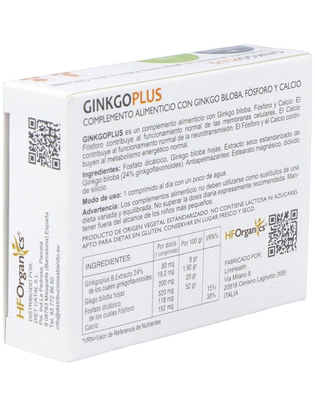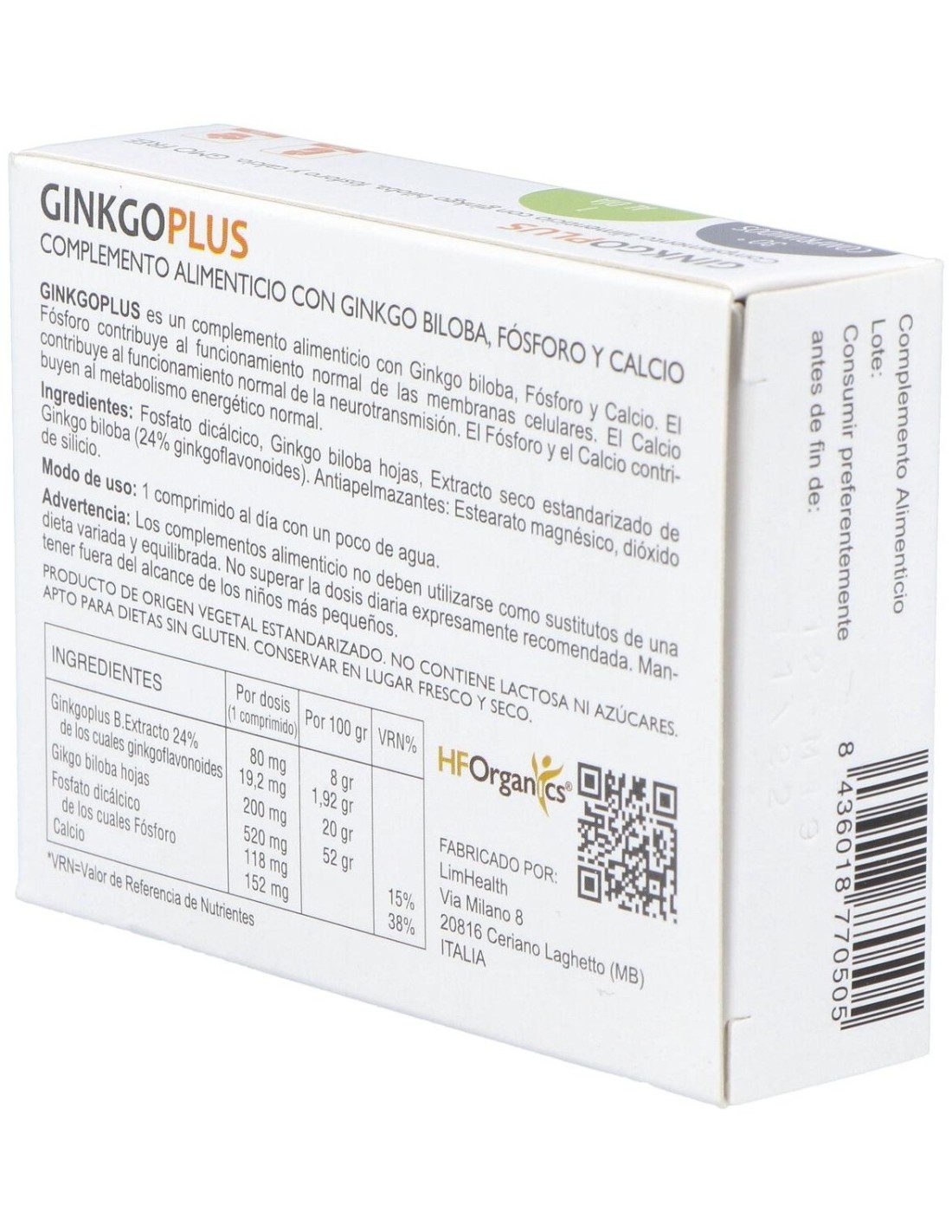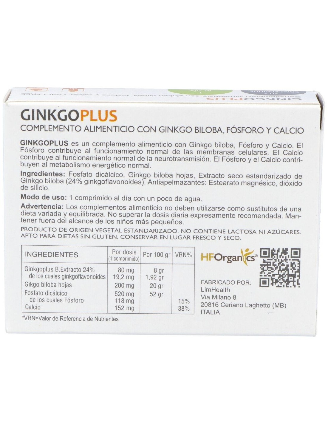 Suplemento à base de Ginkgo enriquecido com fósforo e cálcio. O fósforo contribui para o funcionamento normal das membranas celulares. O cálcio ajuda o funcionamento normal da neurotransmissão. Ambos contribuem para o metabolismo energético normal.