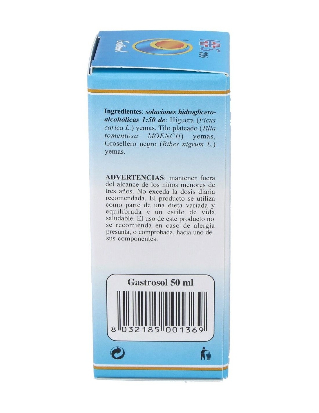 Gastrosol de Herboplanet es un complemento alimenticio a base de principios vegetales conocidos por sus efectos beneficiosos, capaz de favorecer las funciones normales del aparato digestivo.Gastrosol de Herboplanet esta recomendado en casos de gastritis, úlcera gástrica y duodenal, náusea matutina, distonía neurovegetativa, disfagias esofágicas, hernias diafragmáticas. Espasmofilia.Ingredientes por 150 gotas:MSA (Macerado Espagírico-Alquímico de Solanimus R.E. 1/50) de: Higuera (Ficus carica) yemas 2,901 g, Tilo plateado (Tilia tomentosa) yemas 1,169 g, Grosellero negro (Ribes nigrum) yemas 0,725 g.Modo de empleo:Tomar 30-40 gotas, en poca agua, 15 minutos antes de las 3 comidas principales.Presentación:Envase de 50 ml.