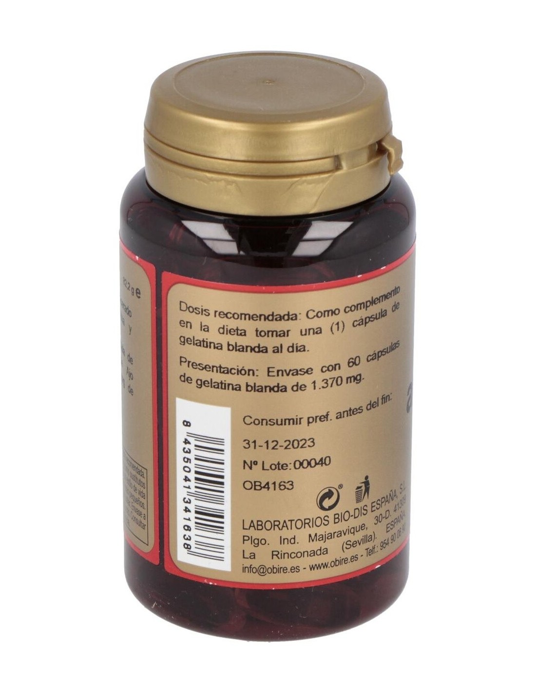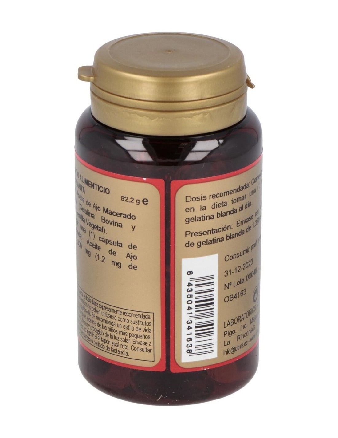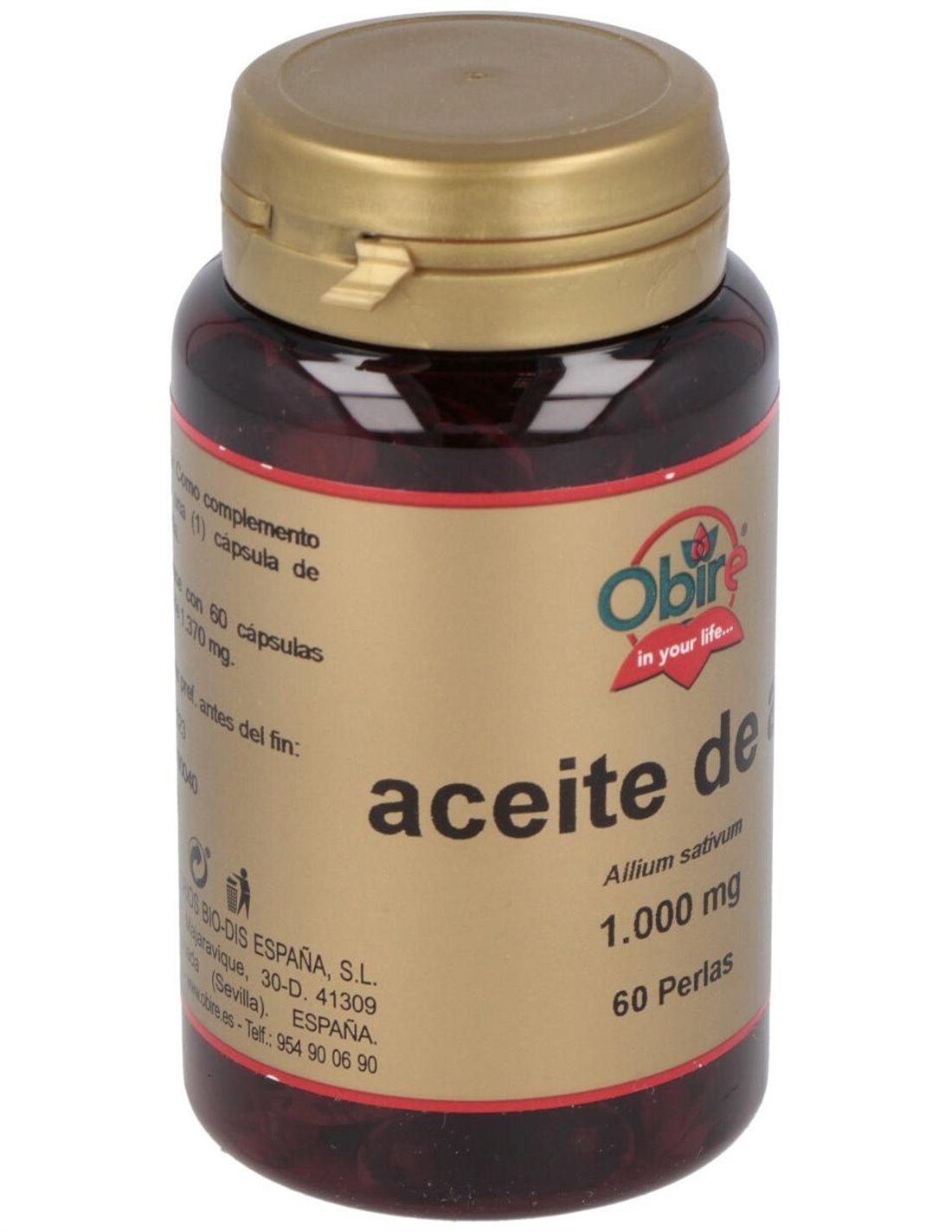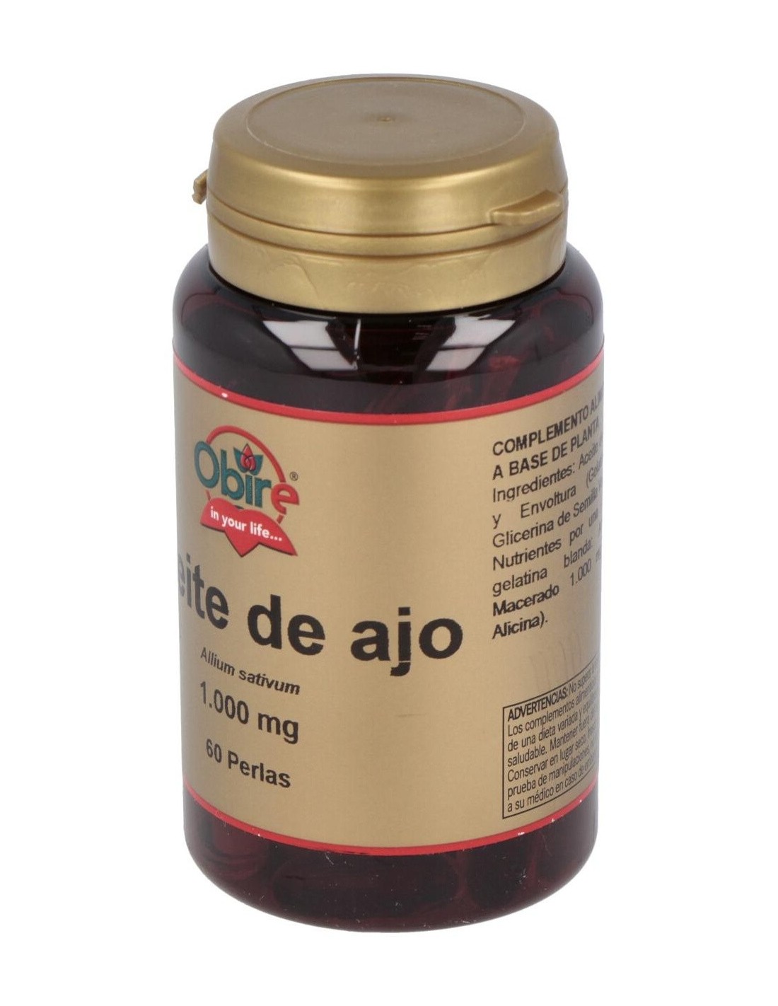 Complemento alimenticio a base de aceite de ajo macerado. GARLIC OIL (ajo) 60perlas de OBIREDescripción:Complemento alimenticio a base de aceite de ajo macerado.