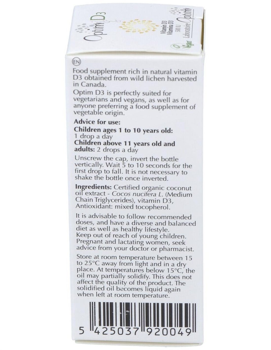 obtenida a partir del liquen silvestre cosechado en Canadá. La vitamina D es esencial para todas las edades, pues contribuye al mantenimiento normal de los huesos, dientes, al mantenimiento de la función muscular, al buen funcionamiento del sistema inmunitario. Tiene también un papel en el proceso de la división celular.