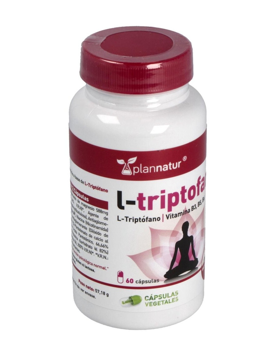 El L-Triptofano 60Cap. de Plannatur es un suplemento nutricional dirigido a personas que buscan apoyar su bienestar emocional, formulado con L-triptófano para contribuir a la síntesis de serotonina.