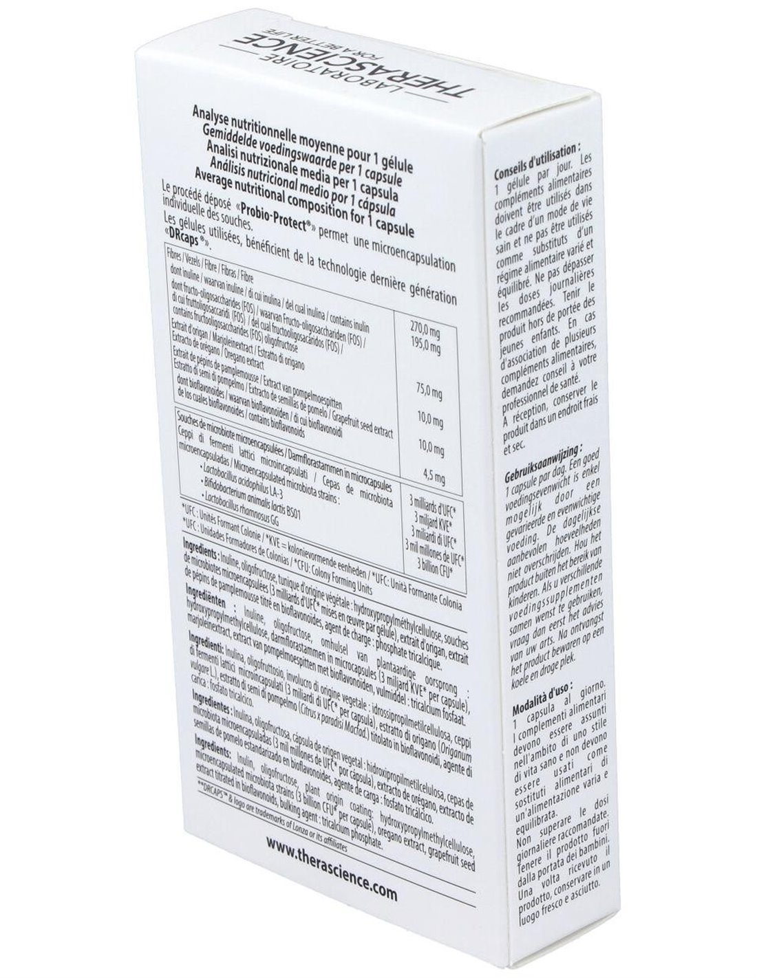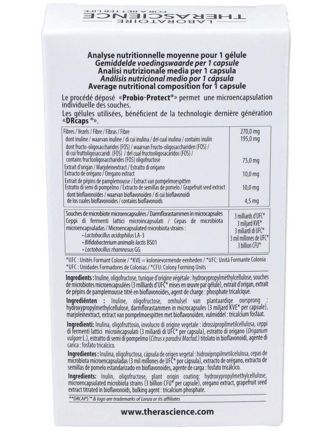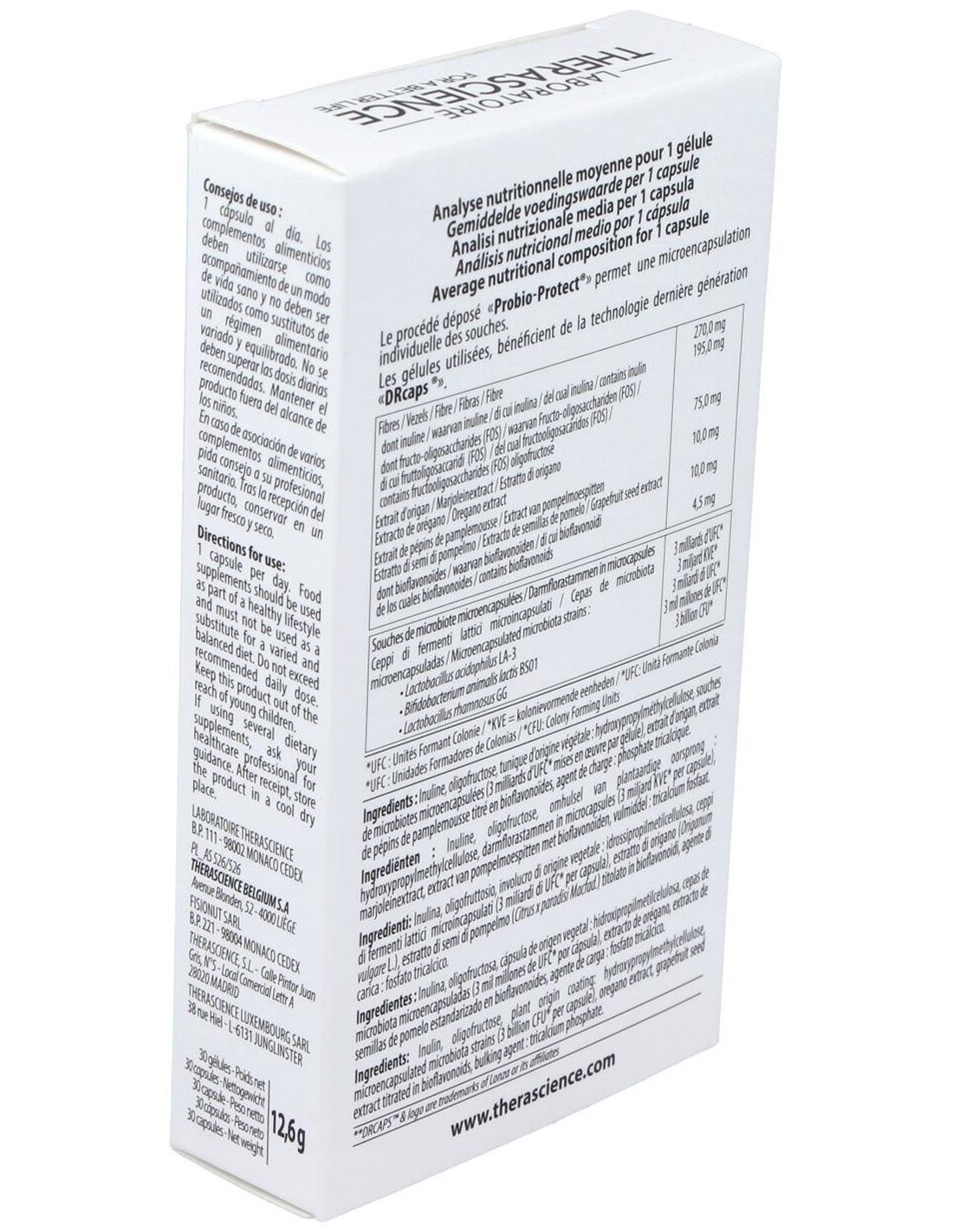 Asocia probióticos, fibras antisépticas y antibacterianos naturales. Los probióticos contribuyen al normal mantenimiento del sistema digestivo.
