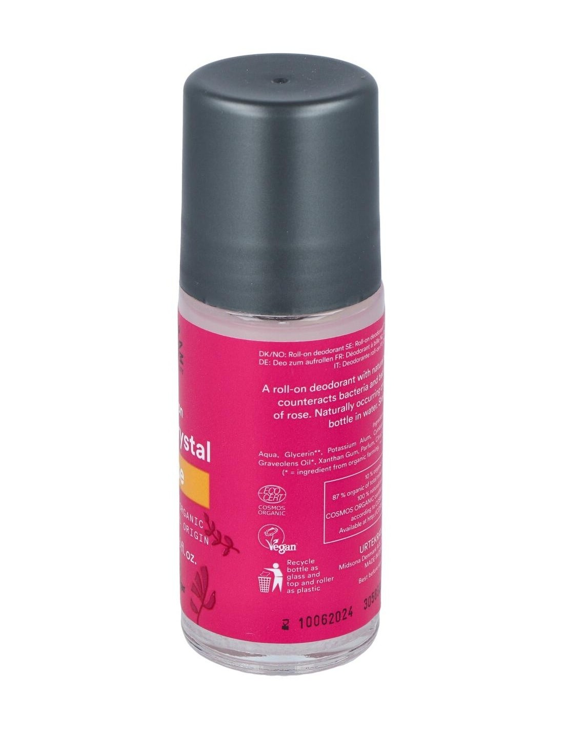 Desodorante cristal con aroma de rosas en práctico roll-on. Las bacterias y el mal olor son una cosa del pasado gracias a la sal mineral natural. A la base desodorante del alumbre y se incorpora glicerina vegetal que cuida la piel y aceites de geranio rosa y citronella que ofrecen un aroma delicado a miles de rosas. COSMOS ORGANIC certificado por Ecocert Greenlife. Vegano. No testado con animales.
