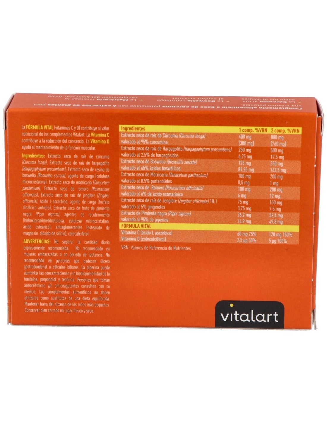 VITALART CÚRCUMA COMPLEX é um suplemento adjuvante em casos de dores musculares e articulares. Atua através de uma seleção de extratos vegetais que modulam a resposta inflamatória em diferentes níveis, tanto em processos de conforto agudos quanto crônicos.
