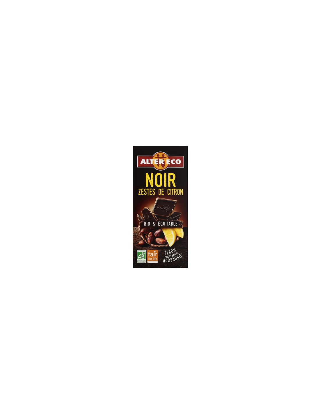 El Chocolate negro con limón bio de Altereco es un chocolate negro de Perú fabricado con una receta gourmet de una fusión de ralladura de limón confitado y sabores afrutados e intensos.