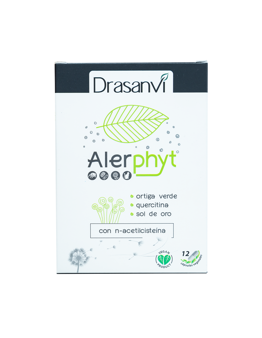 Alerphyt es un complemento alimenticio que combina diversos extractos vegetales: Sol de Oro y Ortiga Verde con sustancias como la Quercitina (bioflavonoide, que se encuentra de manera natural en numerosas frutas y verduras), extraída de la manzana y la cebolla roja, la Bromelaína (proteasa extraída de la piña), N-acetilcisteina y Vitamina C. Esta excelente mezcla se ha acondicionado en cápsulas vegetales, convirtiéndola en un producto apto para vegetarianos y veganos.