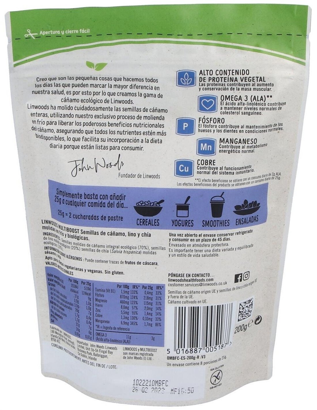 Semillas Molidas de Cáñamo, Lino y Chía Bio de Linwoods