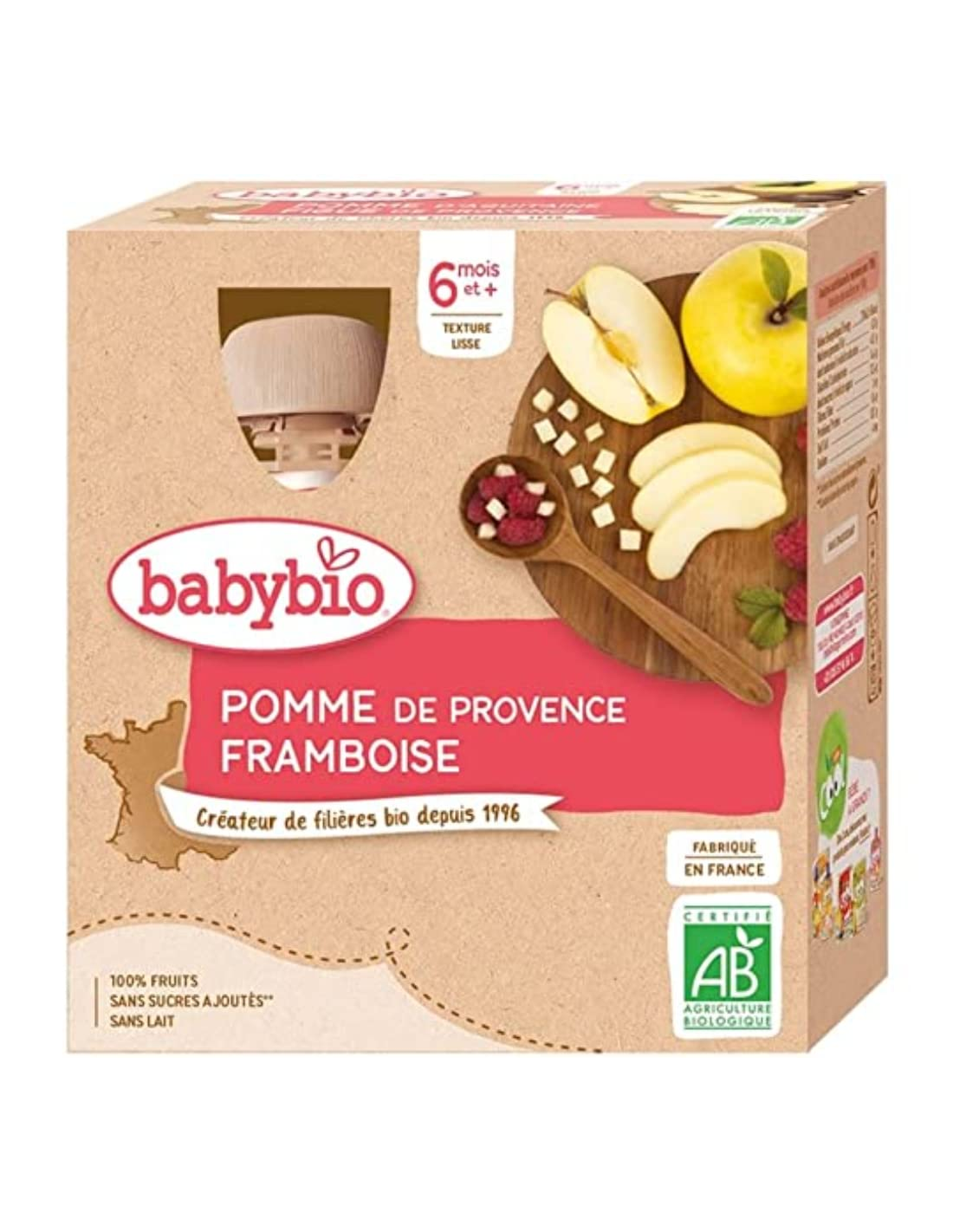 Características y Beneficios Exclusivos de Babybio Pouche Manzana Frambuesa Bio 4 X 90 G de Babybio