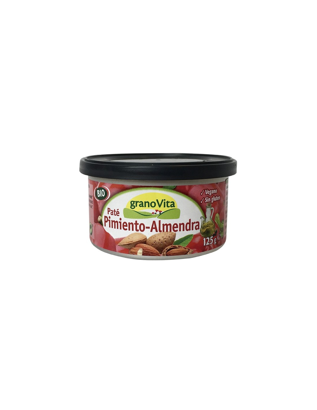 El paté de almendra y pimiento asado de Granovita es ecológico por lo que en su proceso de elaboración no se han utilizado sustancias químicas consiguiendo un producto más natural y saludable. Se trata de un paté que solamente contiene grasas vegetales no saturadas, por lo que es perfecto ya que no tiene colesterol ni grasas añadidas para el cuerpo humano, por otro lado se trata de un producto que contiene una gran cantidad de proteínas ya que hay una combinación de cereales y soja. Este paté es perfecto para aquellas personas que siguen una dieta vegana.