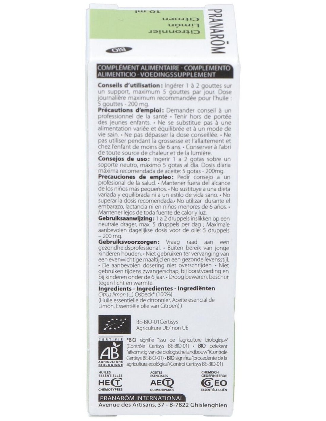 Limon Cascara Aceite Esencial Bio 10Ml. de Pranarom Aceites
