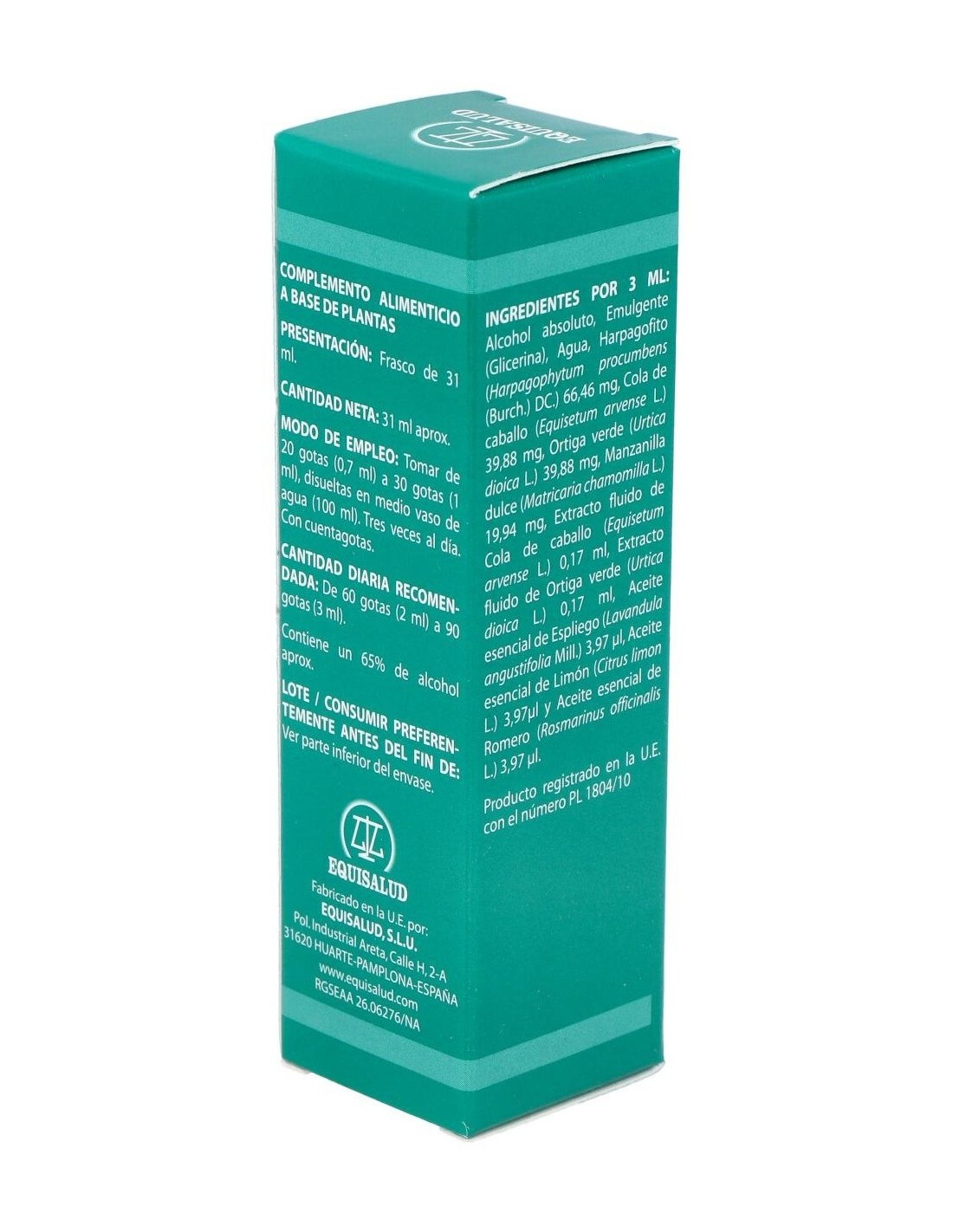 Además de la clara acción antiinflamatoria del harpagofito, en esta mezcla se potencian los efectos regeneradores con un aporte mayor de silicio procedente de la cola de caballo y de los minerales de la ortiga verde. Composición: