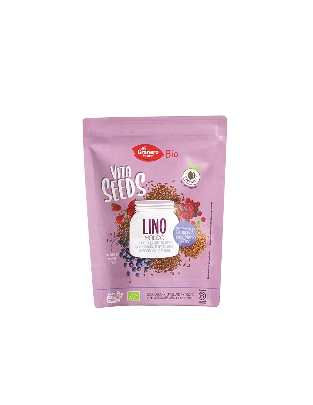 Vitaseeds Linho Moído, Trigo Sarraceno, Framboesa, Mirtilo e Morango Orgânico, 200 G da El Granero Integral