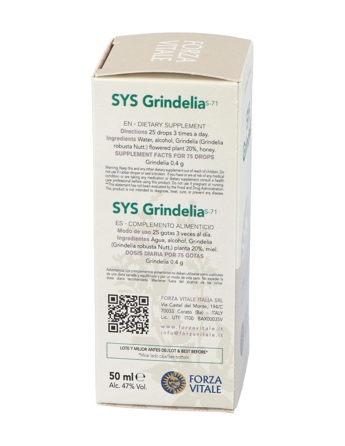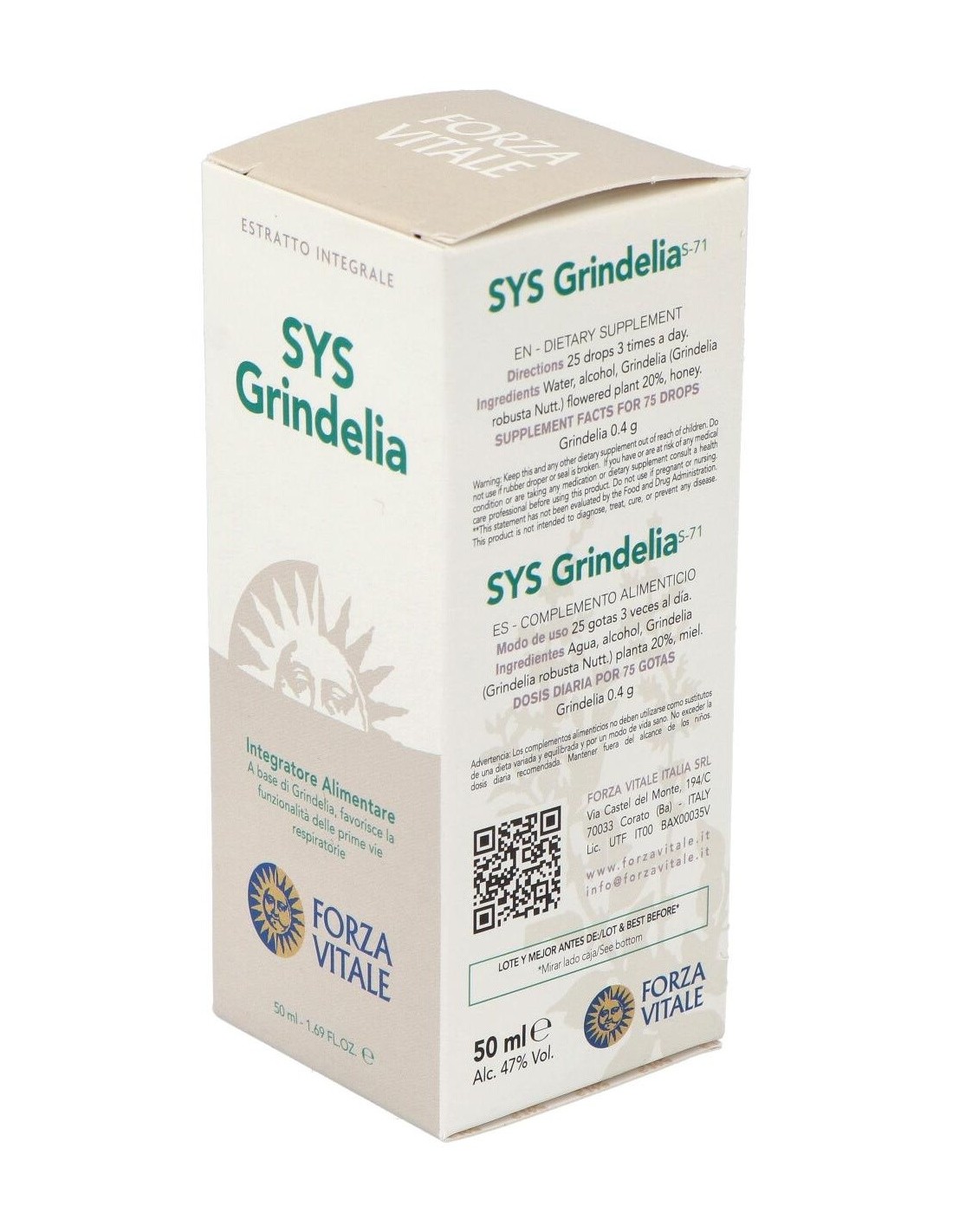 La planta difusa en California contiene principios activos como alcaloides y glucósidos que mitigan tos, ronquera y el catarro traqueal. Las sustancias activas balsámicas tienen efectos expectorantes y calmantes de la tos. Ingredientes:Agua, Alcohol, Grindelia (Grindelia robusta) pianta floresta 20%, miel. Ingredientes activos por dosis diaria (2 ml):0,4 gramos de grindelia. Modo de empleo:Adultos: Tomar 25 gotas 3 veces al día en poca agua o vía sublingual.Niños hasta 12 años: Tomar 10 gotas 3 veces al día en poca agua o en zumo de fruta. Presentación:Frasco de 50 ml.