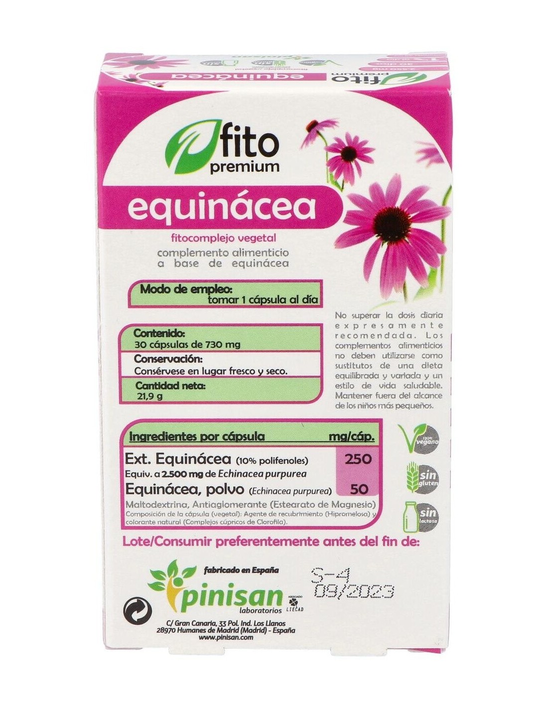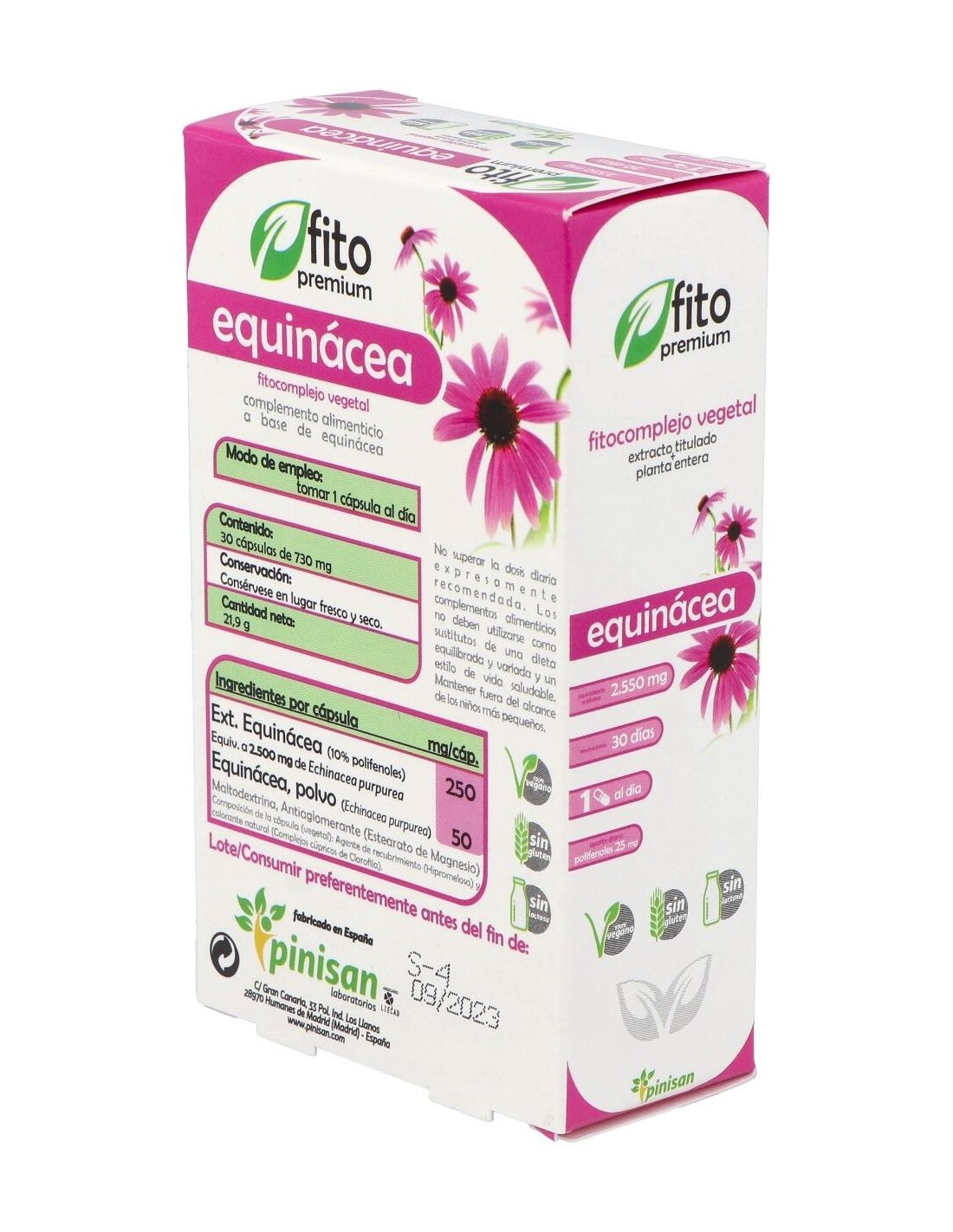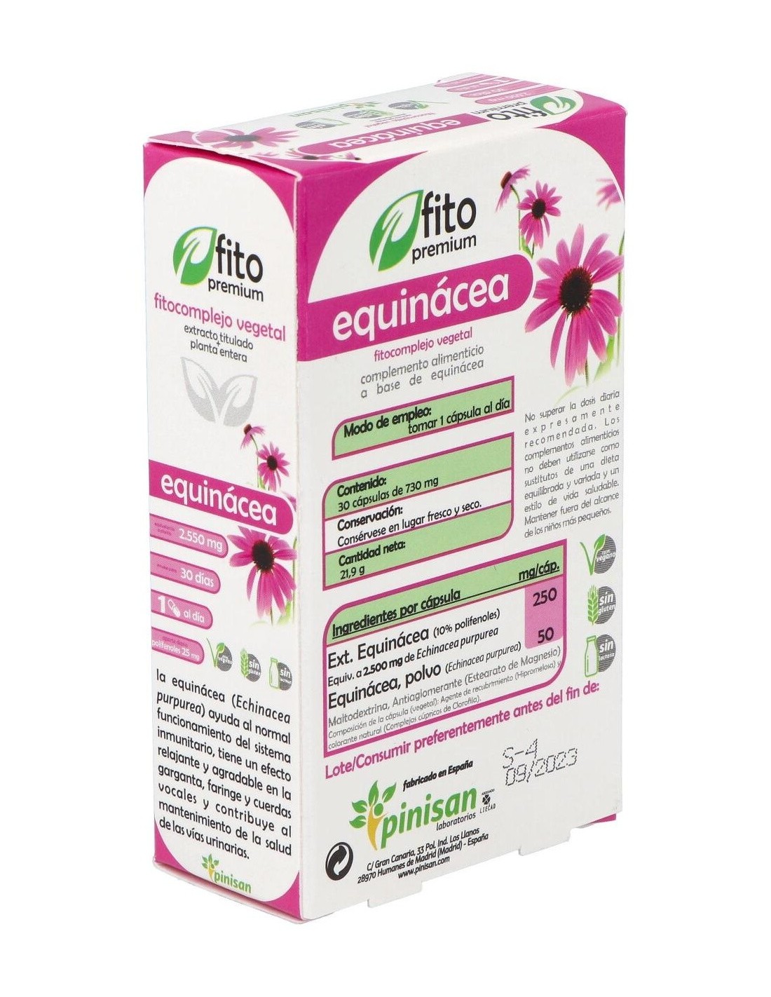 Extracto equinácea (10% polifenoles)...250 mg (equivalente a 2500 mg de echinacea purpurea)